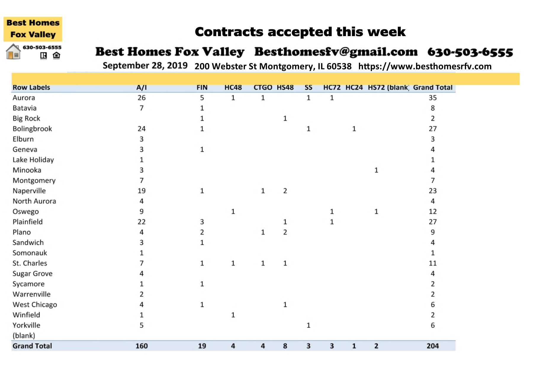 Fox Valley market update September 28 2019. New listings of single family homes were down this week. 259 this week compared to 282 the week before. The market is still good for buyers looking $200,000 and above. Under that amount it is hard to find and you need to jump on them right away. If your home is in that price range and you are thinking about selling now is the time.
