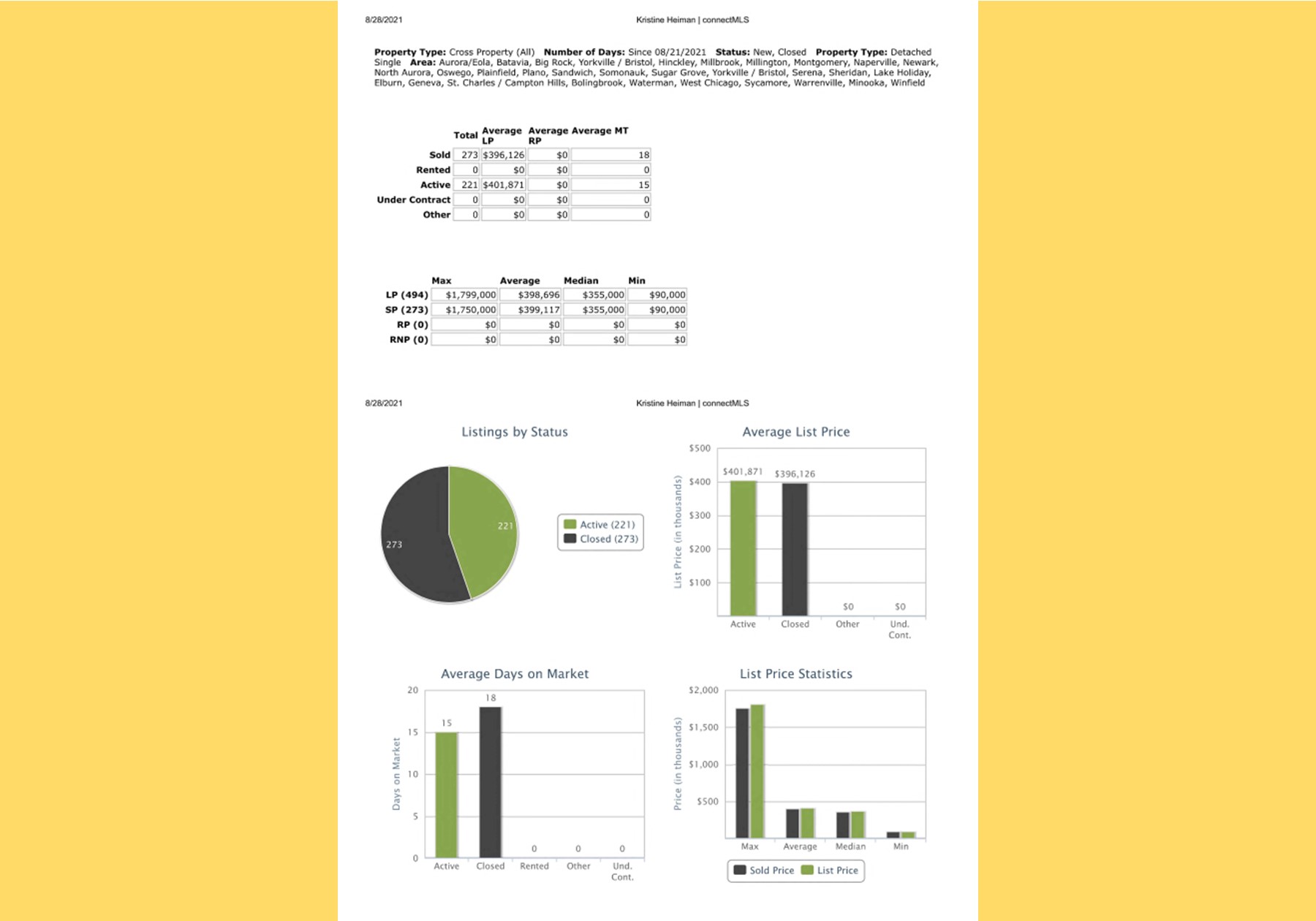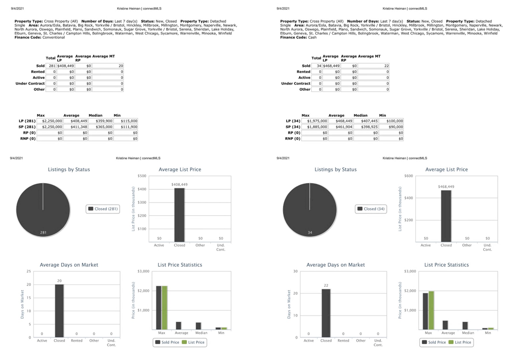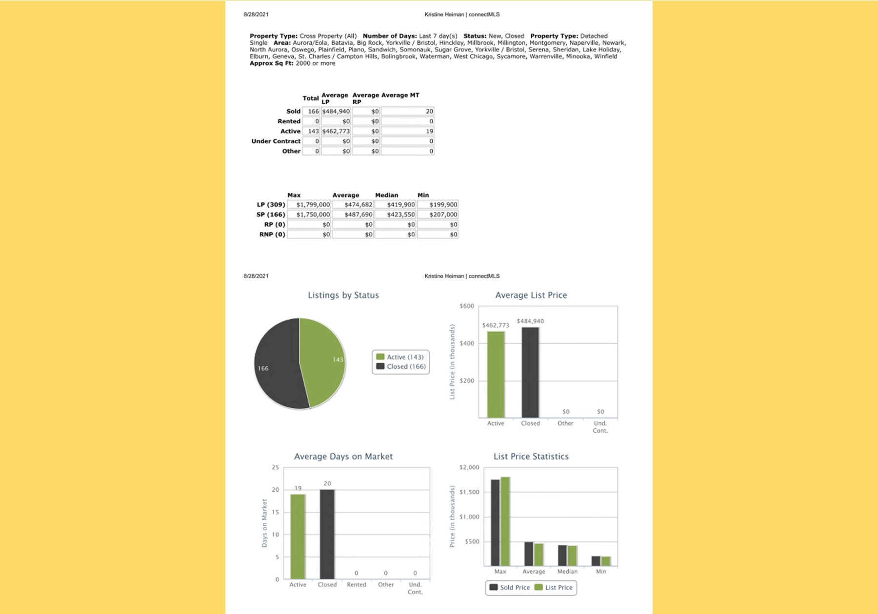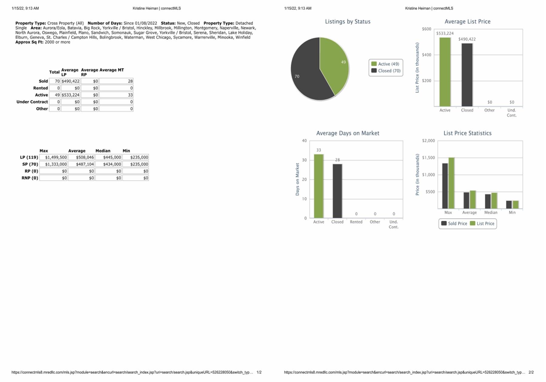 All data provided today is from our MLS, MRED, LLC. The data is continuously changing throughout the day everyday.