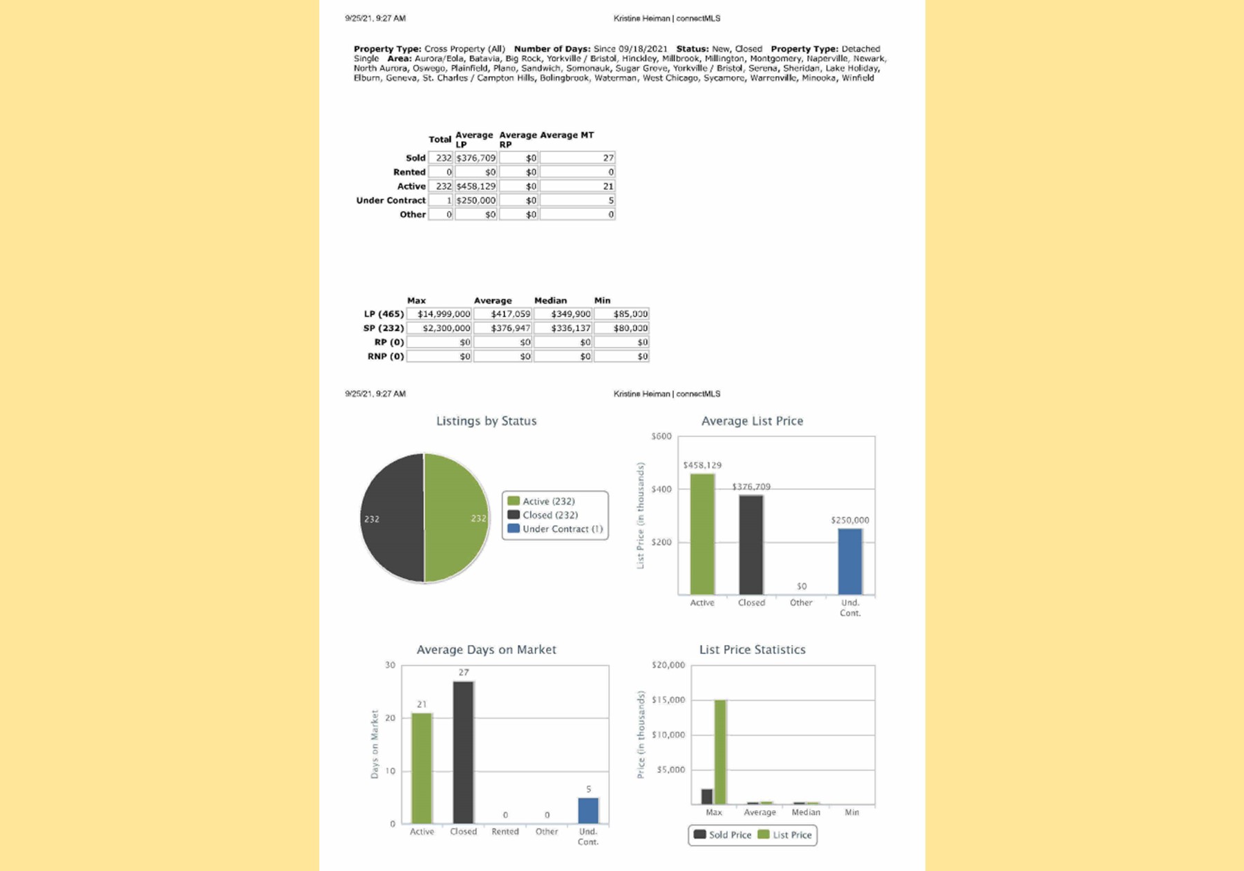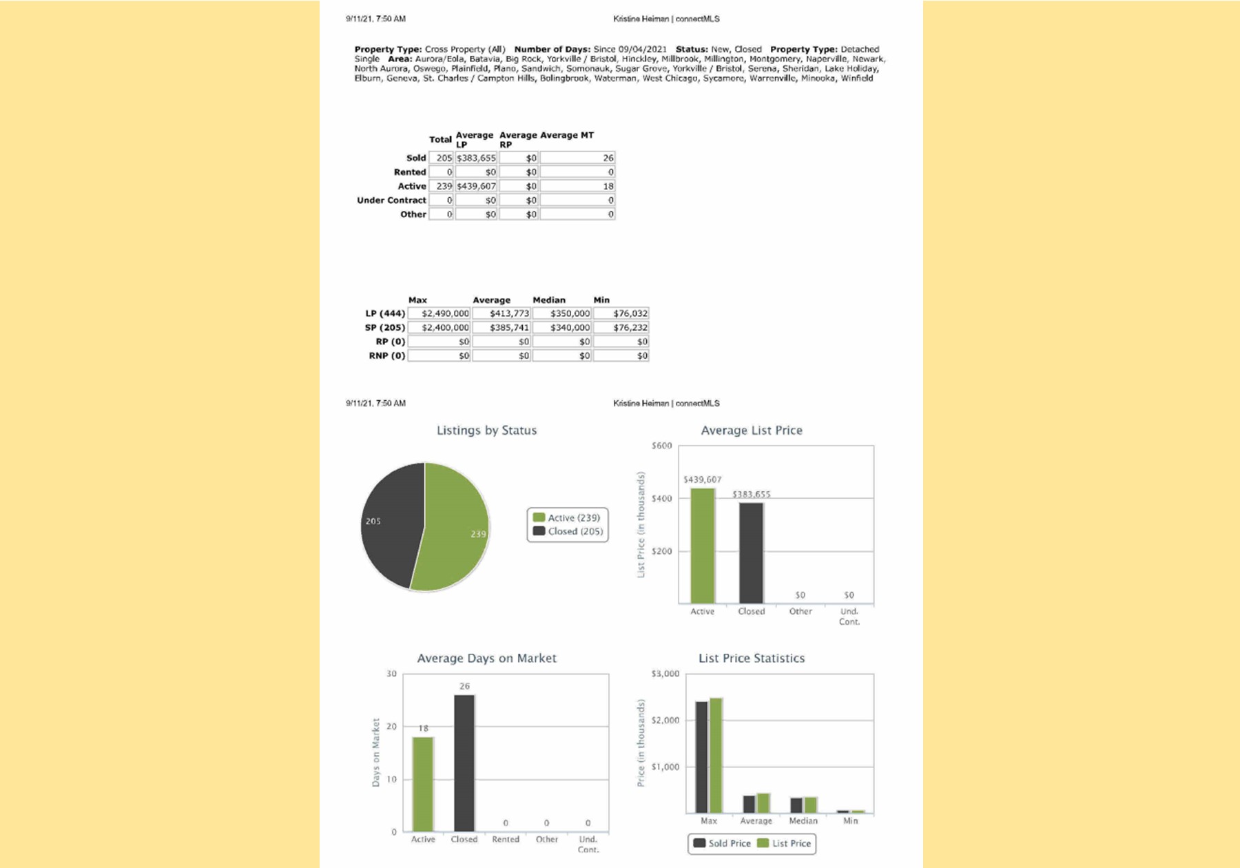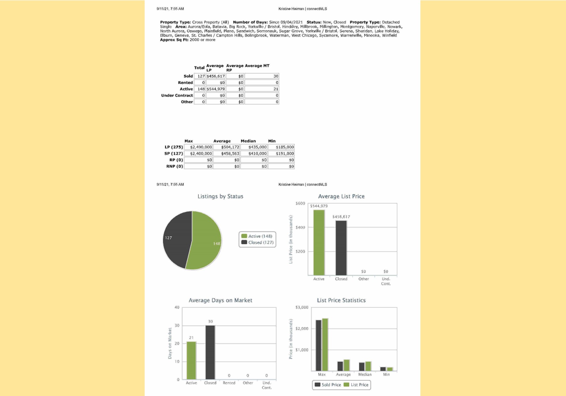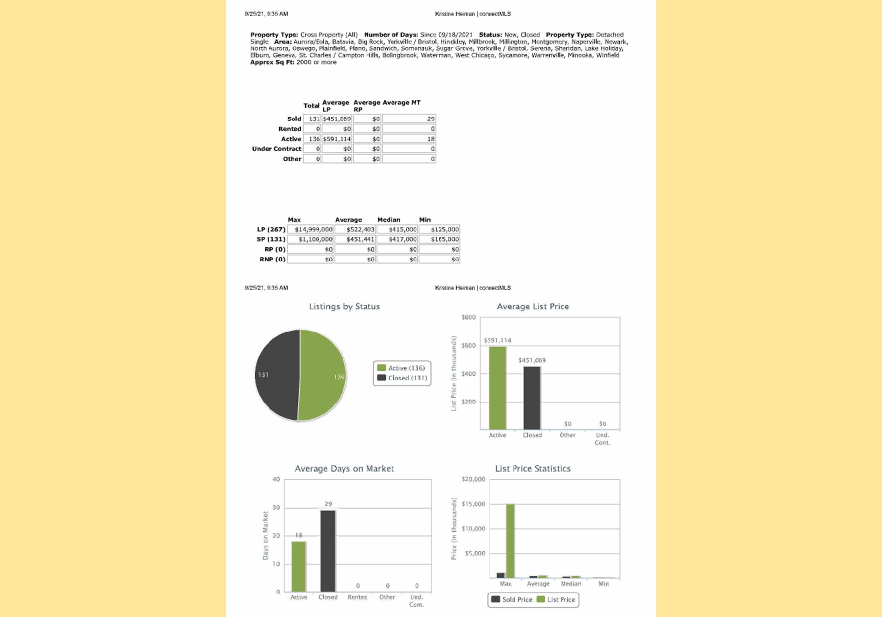 All data provided today is from our MLS, MRED, LLC. The data is continuously changing throughout the day everyday.