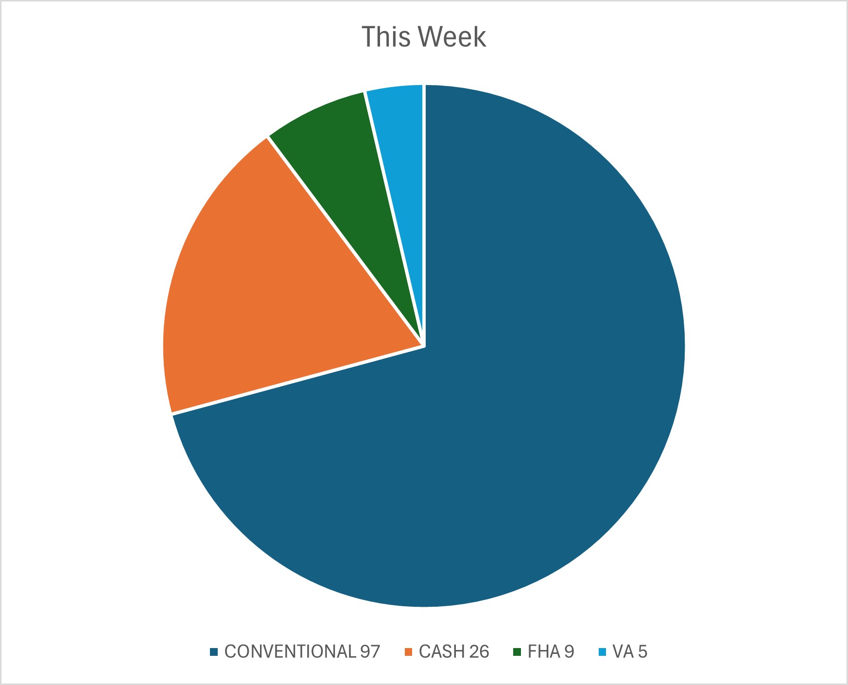 Conventional financing was used to close on 97 homes this week at median price $485,000 with 44 days average market time, last week 127 homes at median price $466,000 with 45 days average market time.