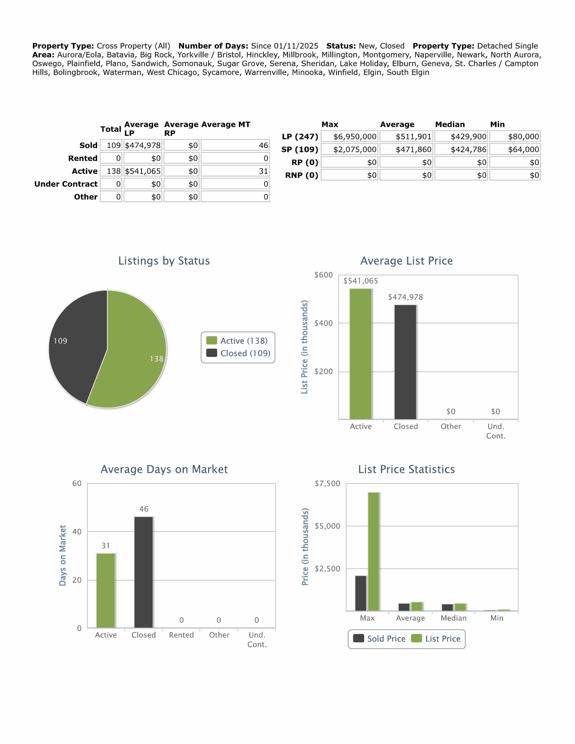 All data provided today was downloaded from our MLS, MRED, LLC. It changes throughout the day as agents upload their information.