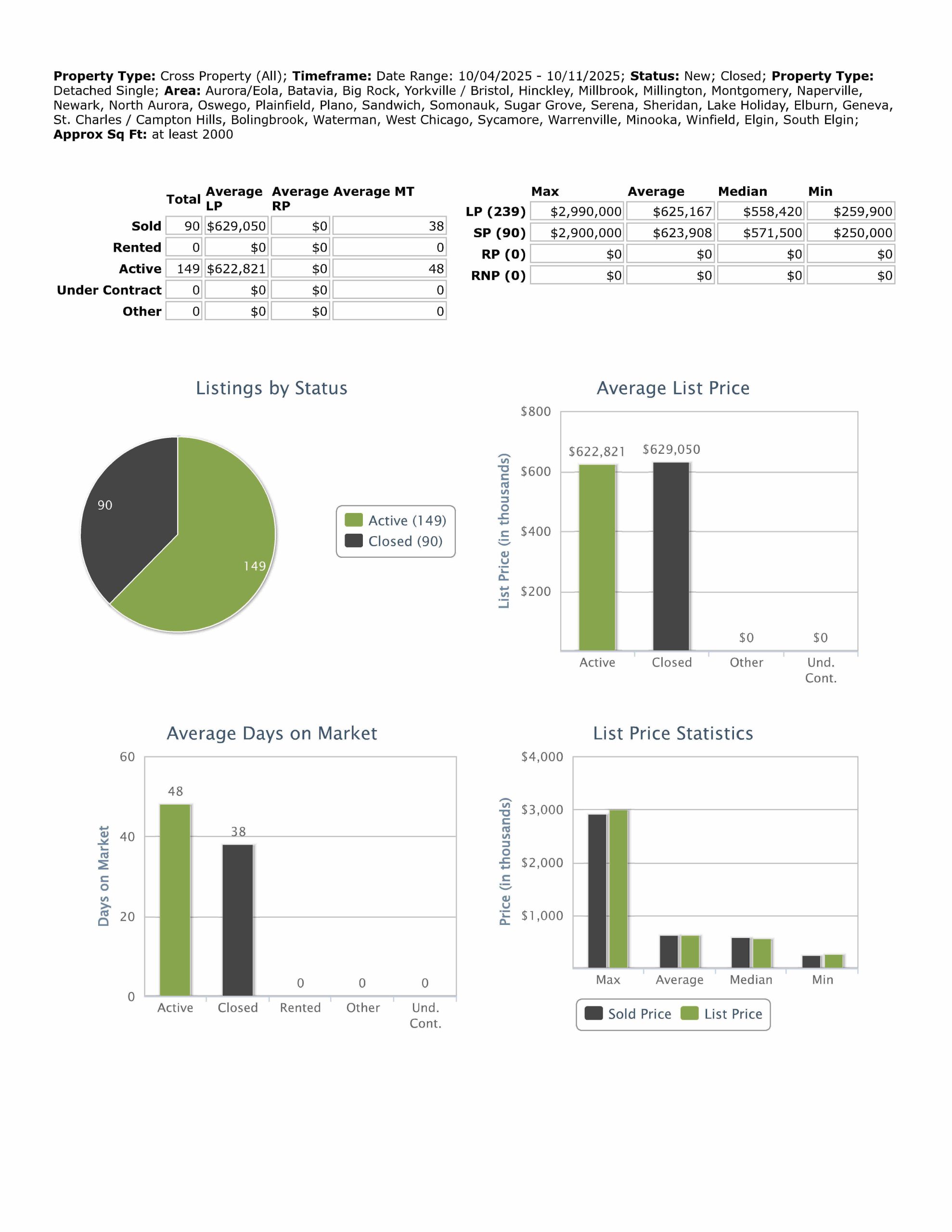 All data provided today is downloaded from our MLS, MRED, LLC. It changes constantly throughout the day.