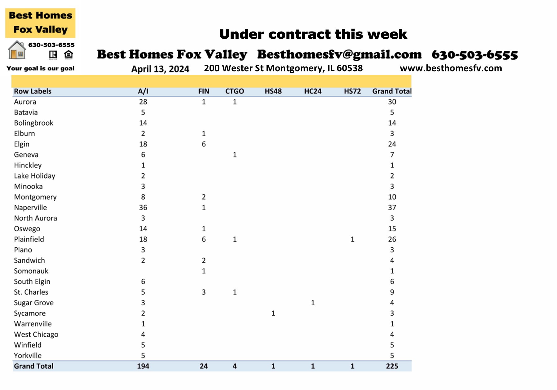 Homes that went under contract this week are up. 225 this week compared to 163 the previous week.