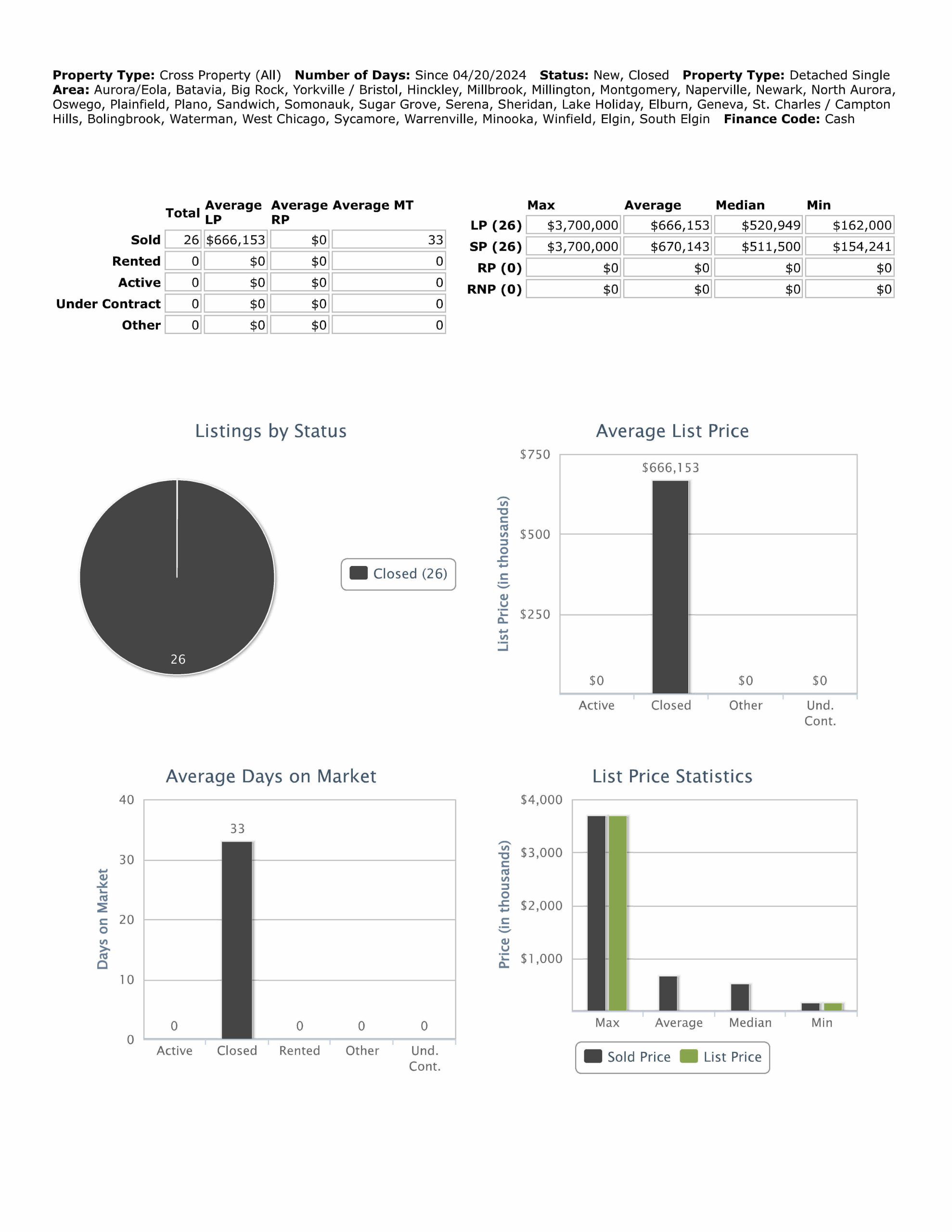 All data provided today is from our MLS, MRED, LLC. It changes throughout the day.