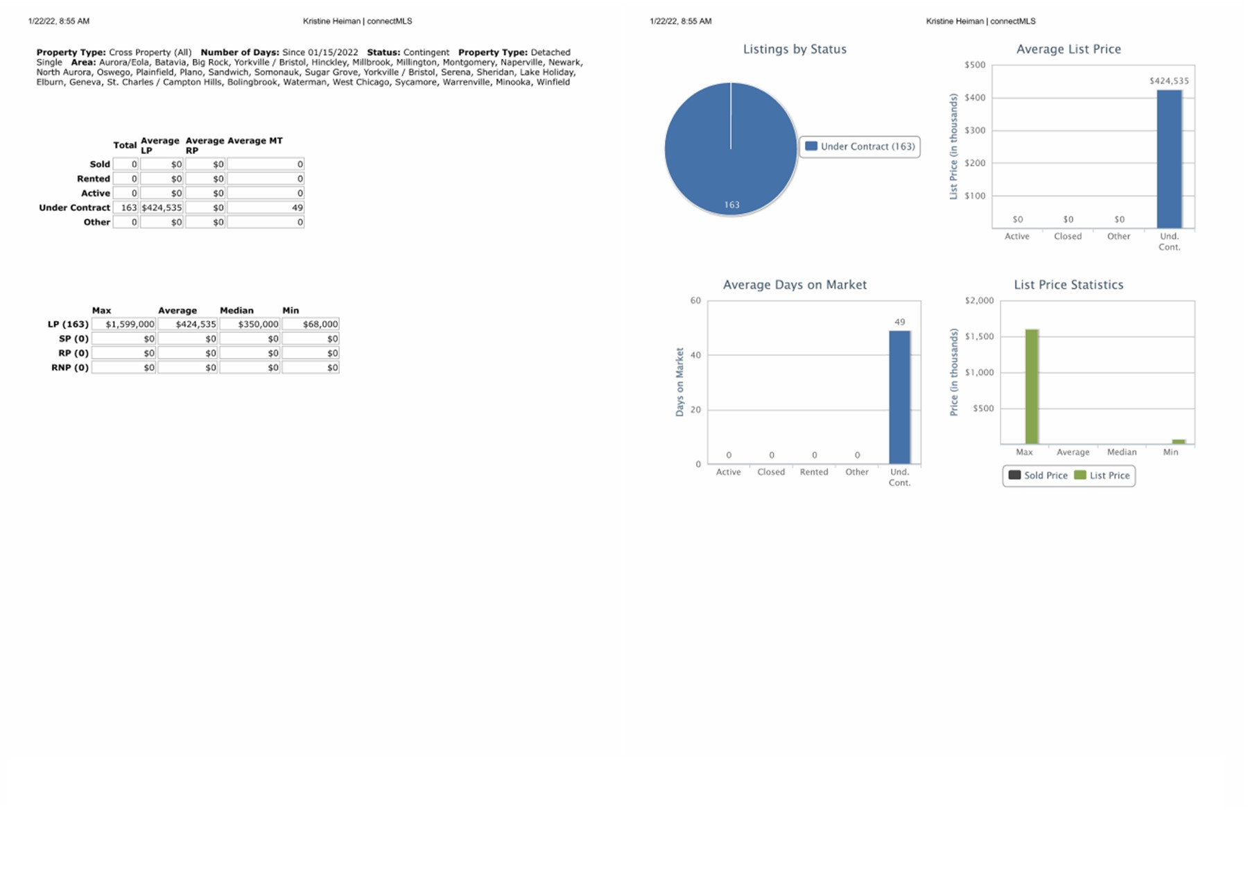 The median price that received a contract this week is $350,000. $68,000 was the minimum price on single family homes. Average market time was 49 days this week.