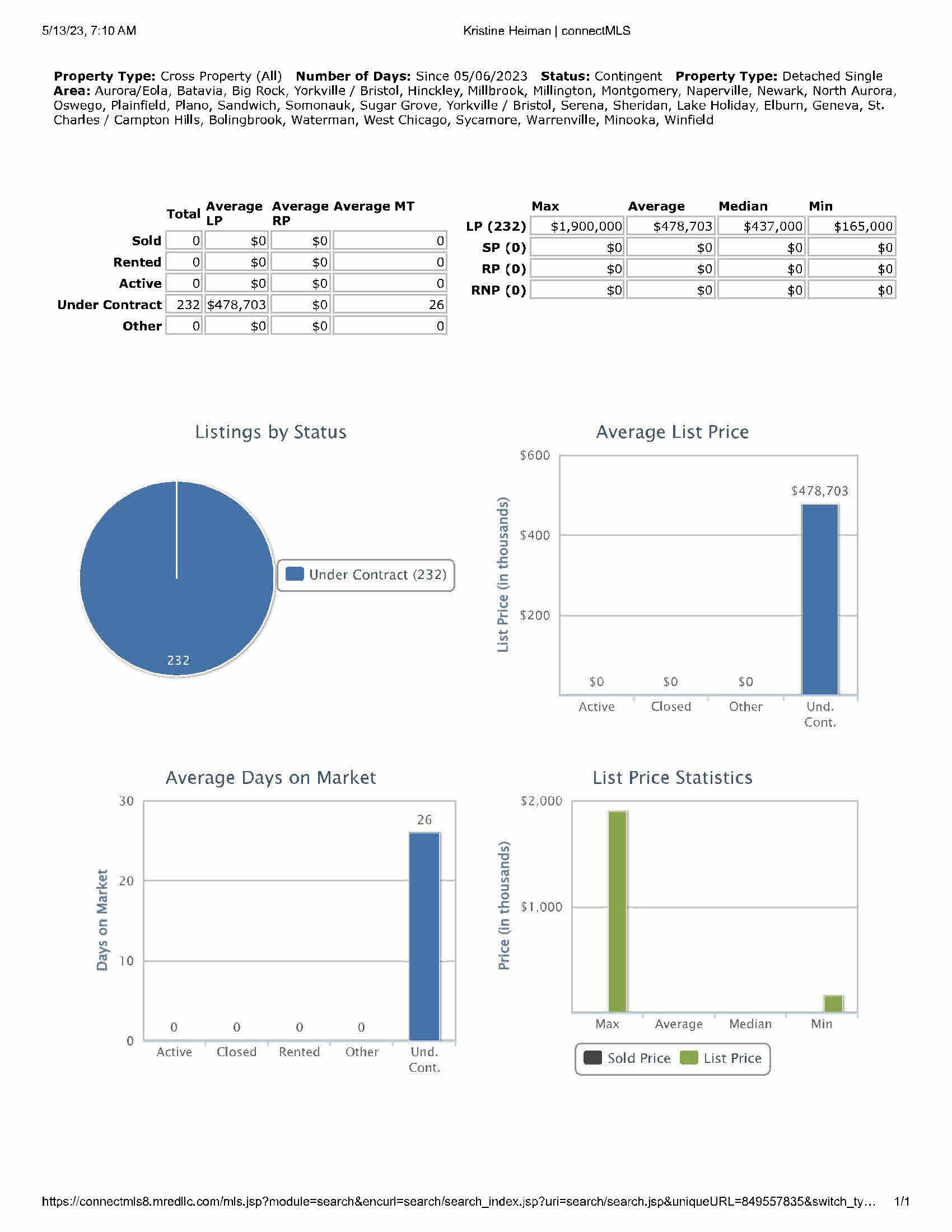 All data provided today is from our MLS, MRED, LLC. It changes throughout the day. The numbers I downloaded this morning will be different than this evenings numbers.