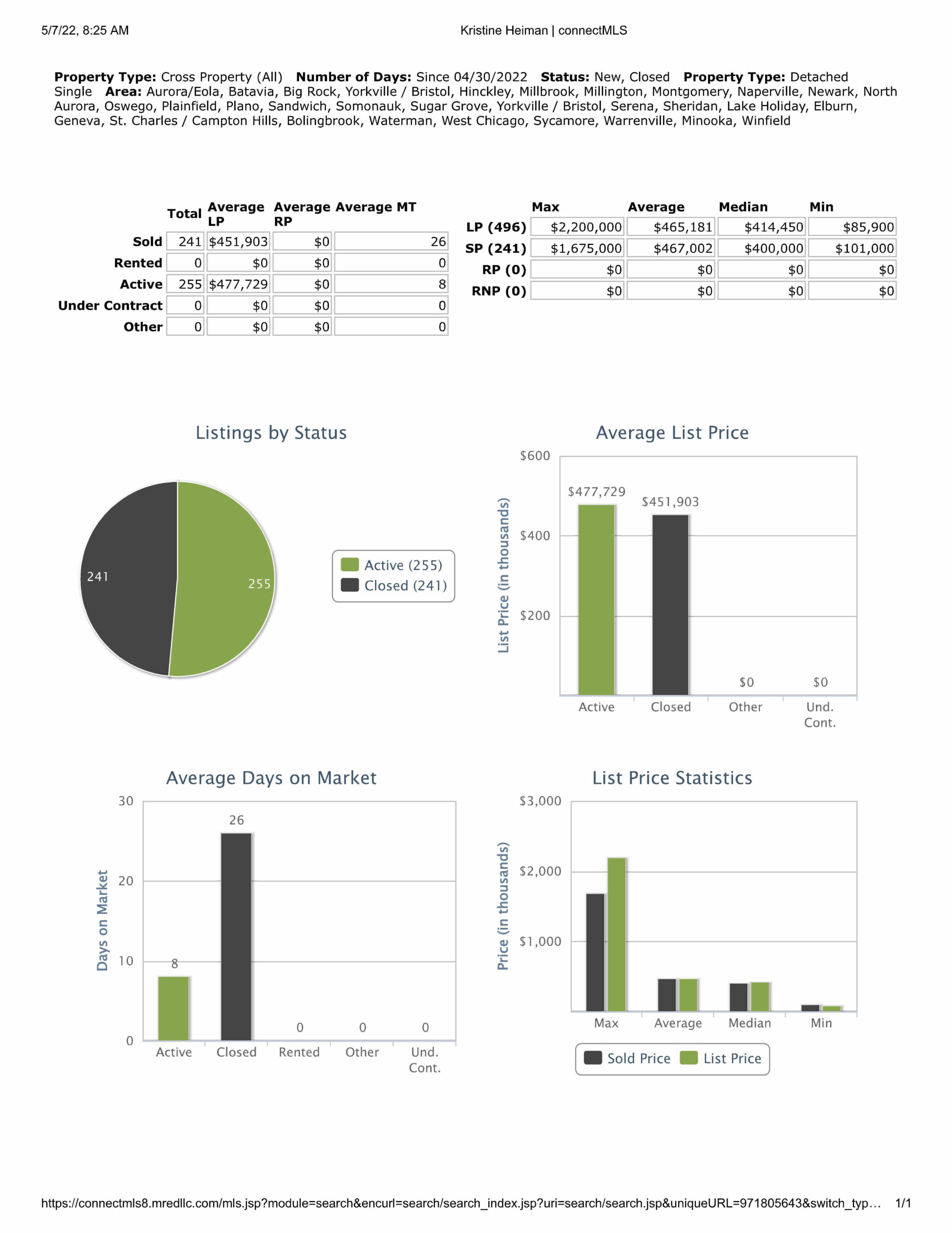 All data provided today is from our MLS system. MRED, LLC. It updates constantly so the information I downloaded this morning is not the same as it is right now.