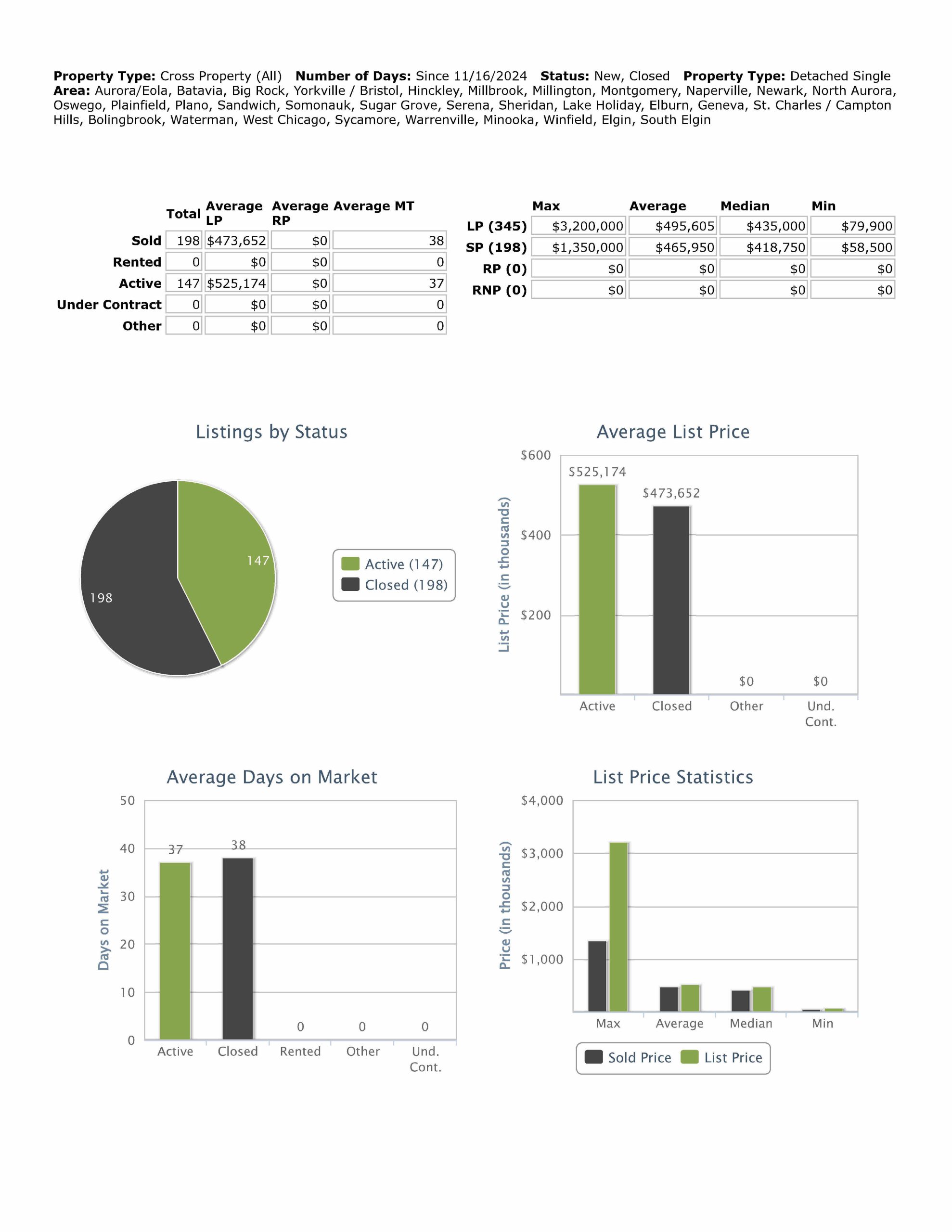 All data provided today was downloaded from our MLS, MRED, LLC. The data changes throughout the day.
