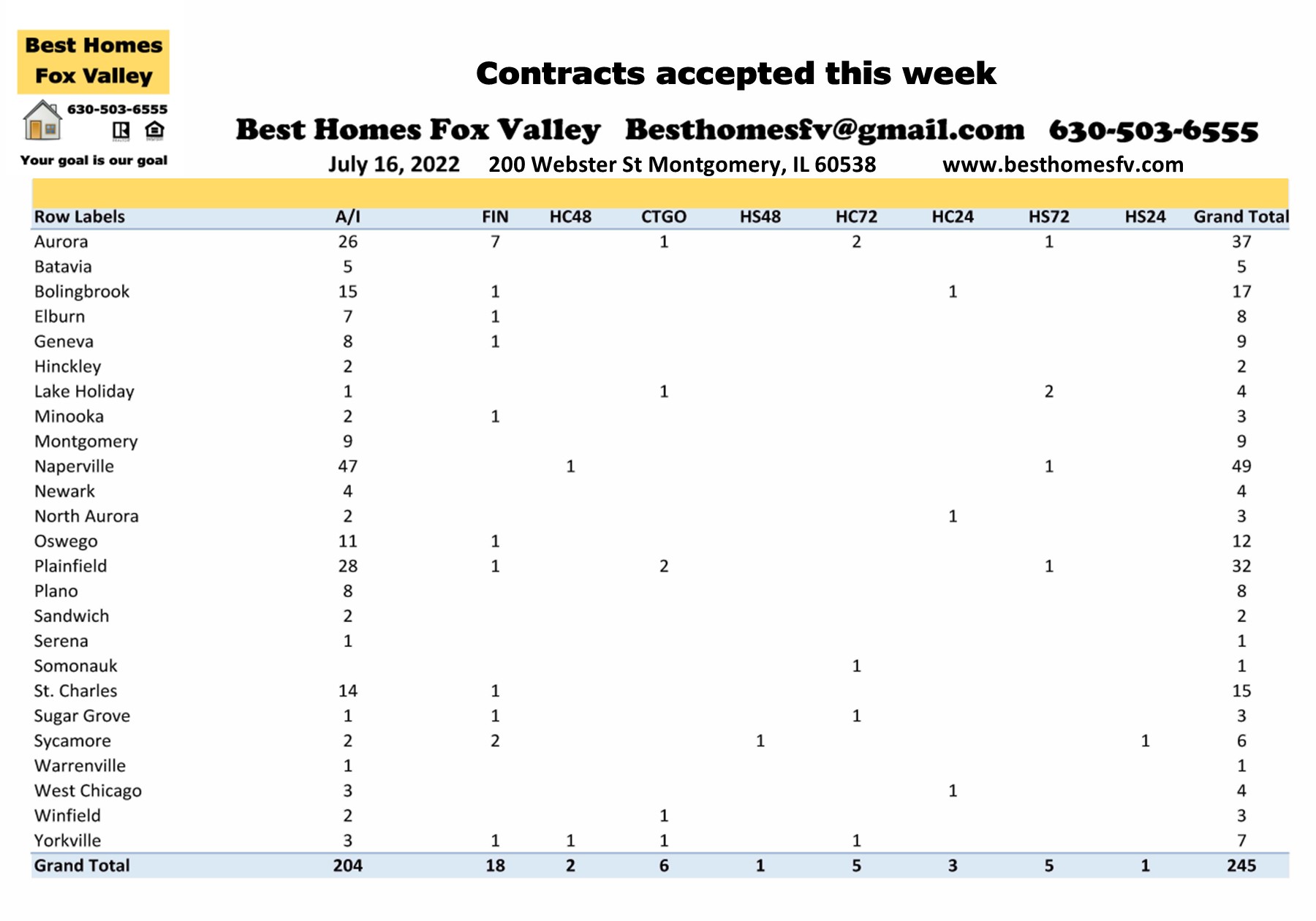 3 short sales were accepted this week by seller’s. 1 each in Bolingbrook, Montgomery, and Somonauk. Now they will go to the lender to see if they will also accept.