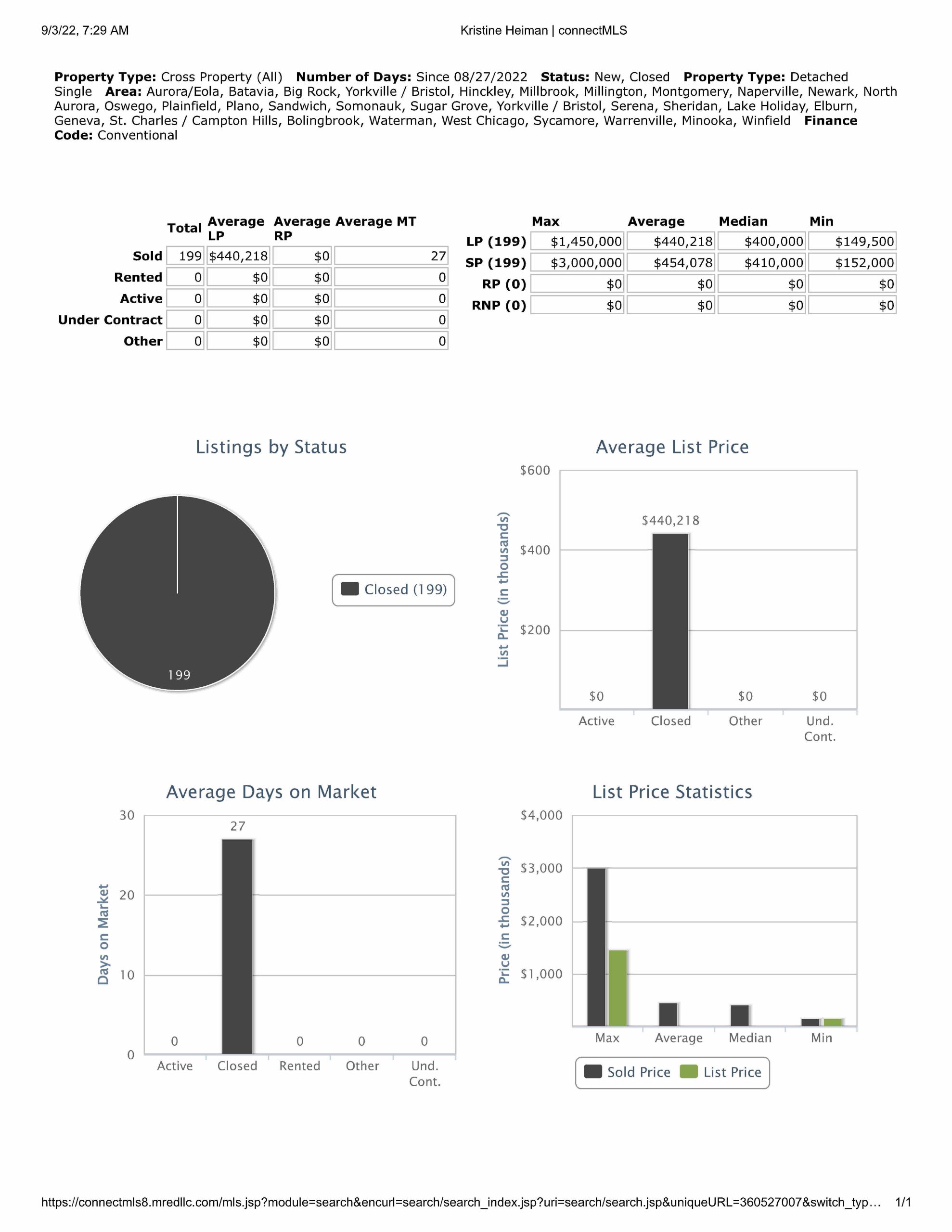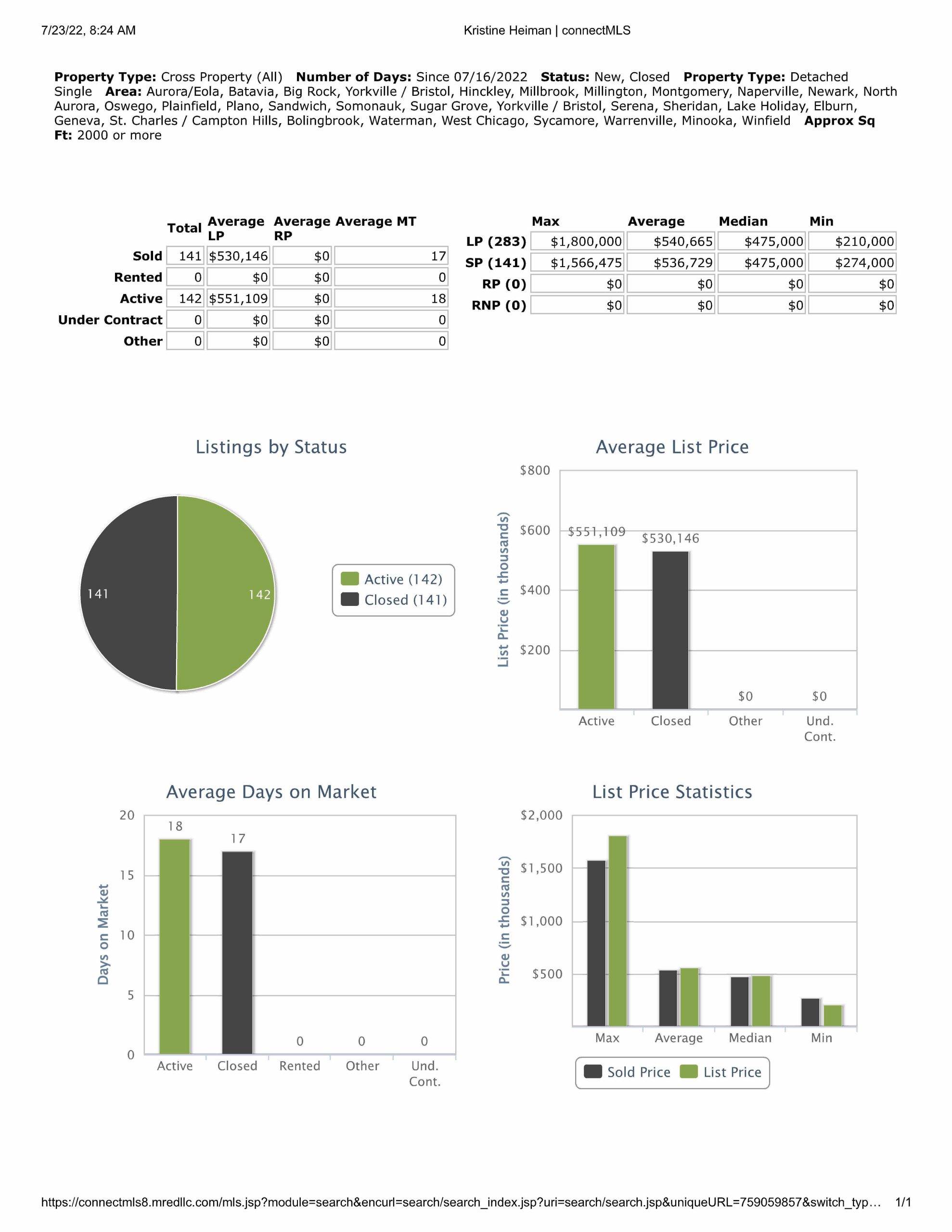 All data provided today is from our MLS, MRED, LLC. It changes throughout the day.