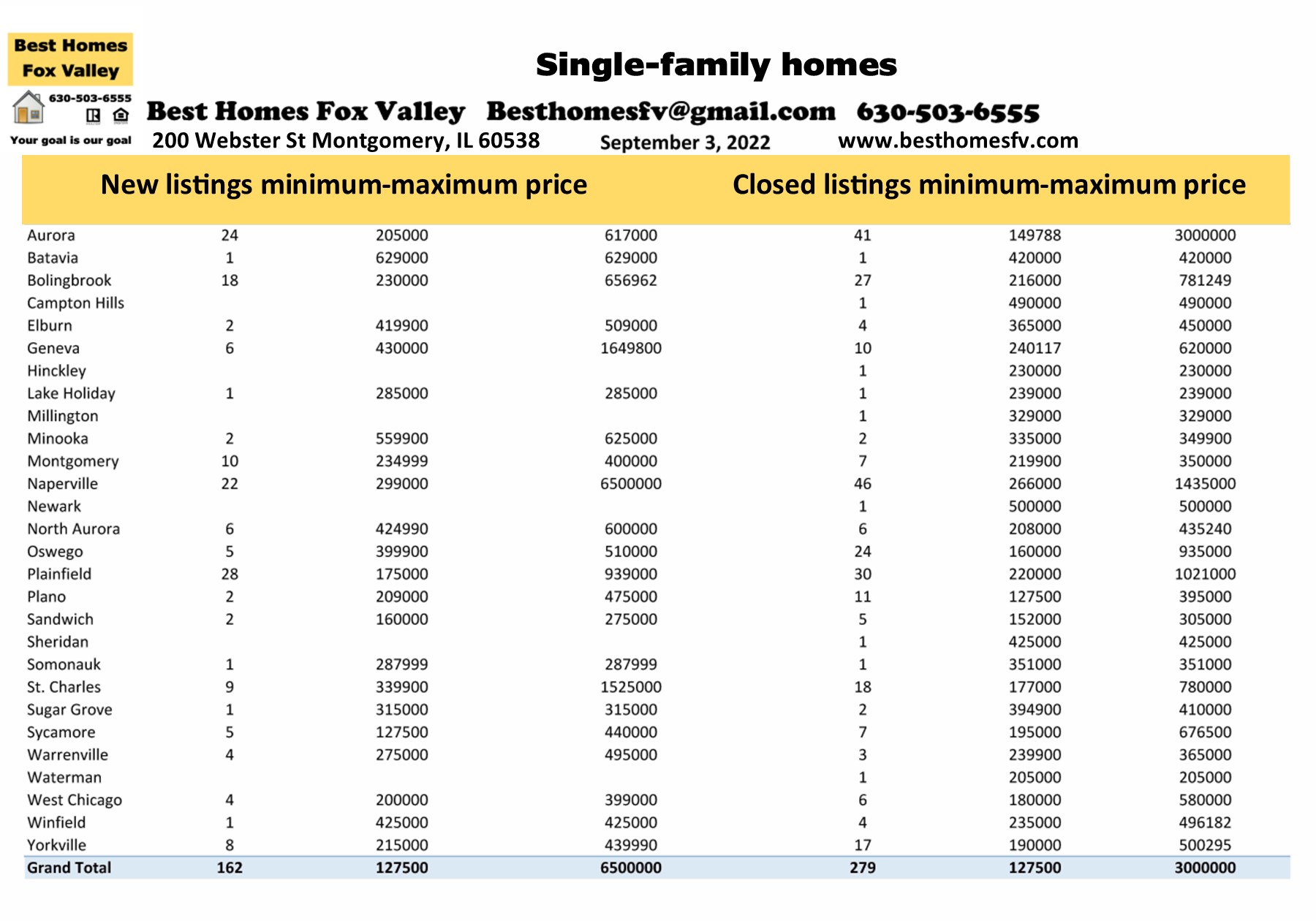 Check back with us every Saturday for the real estate market update for the Fox Valley area of Illinois. At the end of the month we will also take a look back at 2022 and 2021 so you have something to compare this year to.