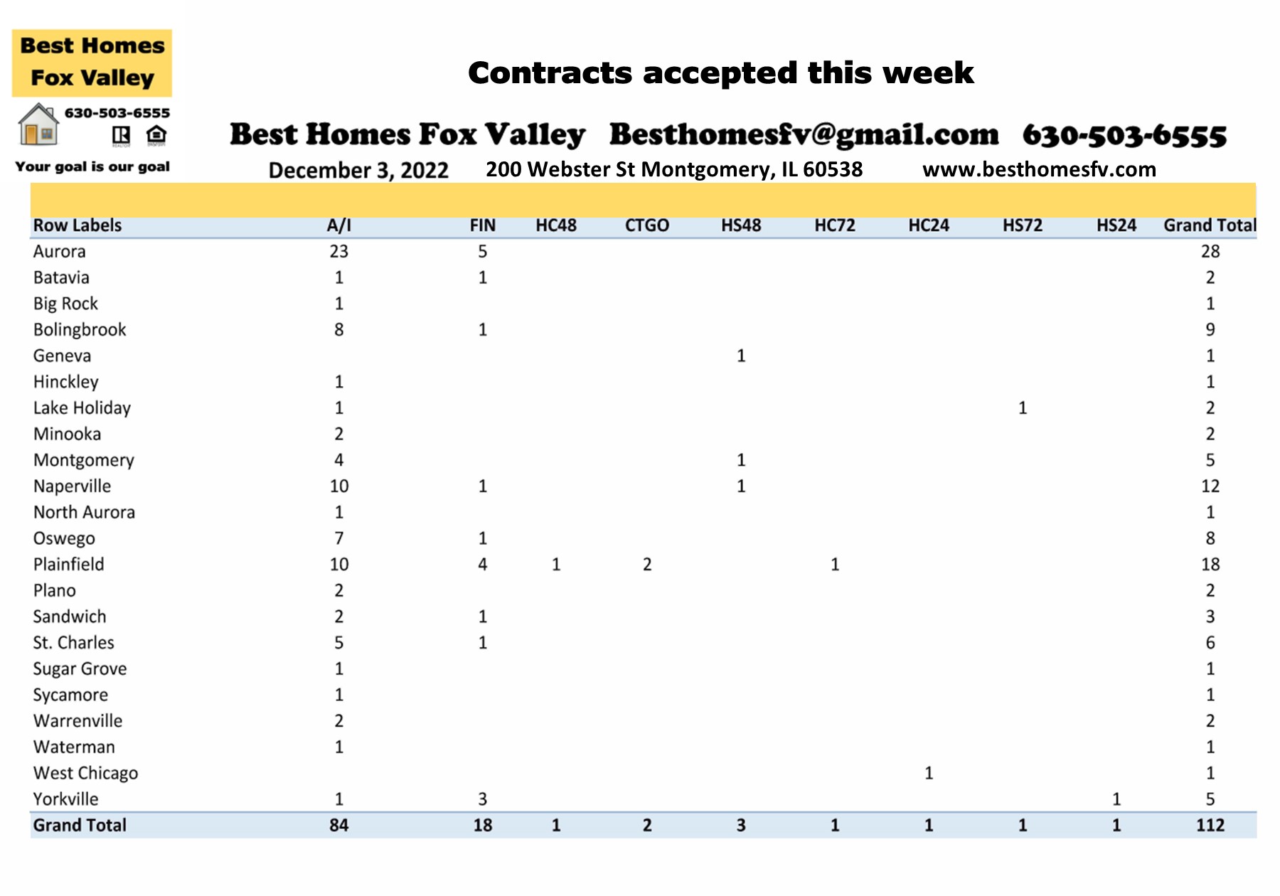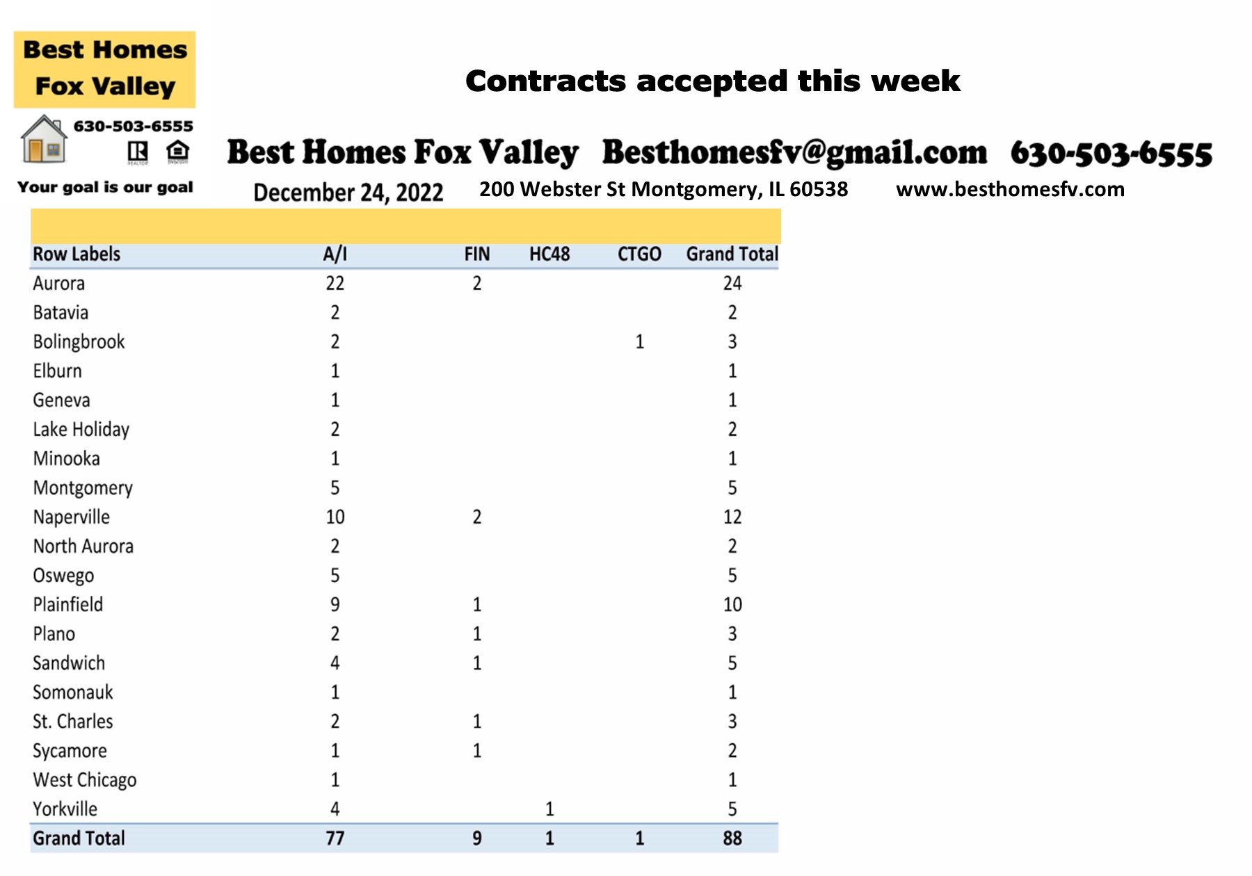 Check back with us every Saturday for the real estate market update for the Fox Valley area of Illinois. At the end of the month we will also take a look back at 2022 and 2021 so you have something to compare this year to.