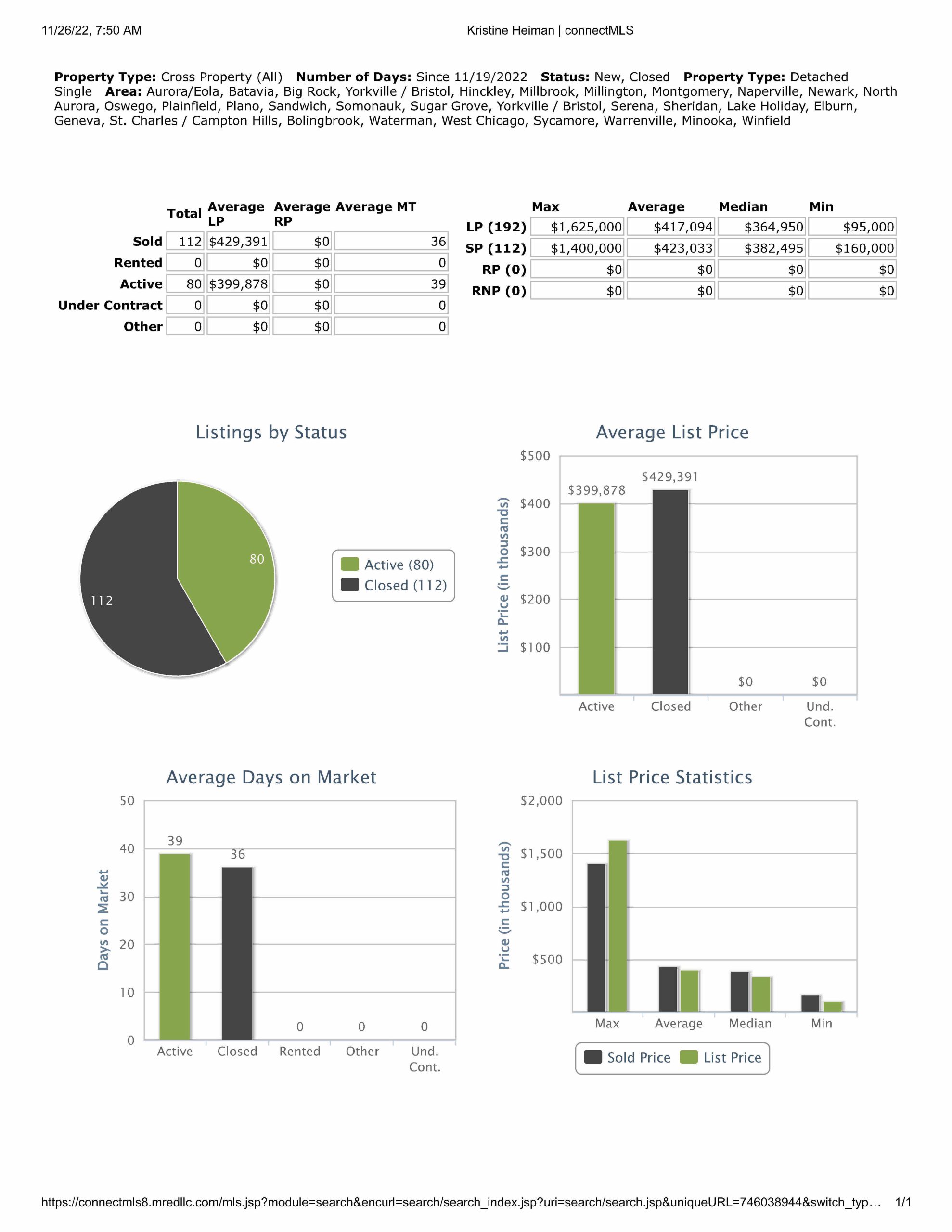 All data provided today is from our MLS, MRED, LLC. It changes throughout the day.