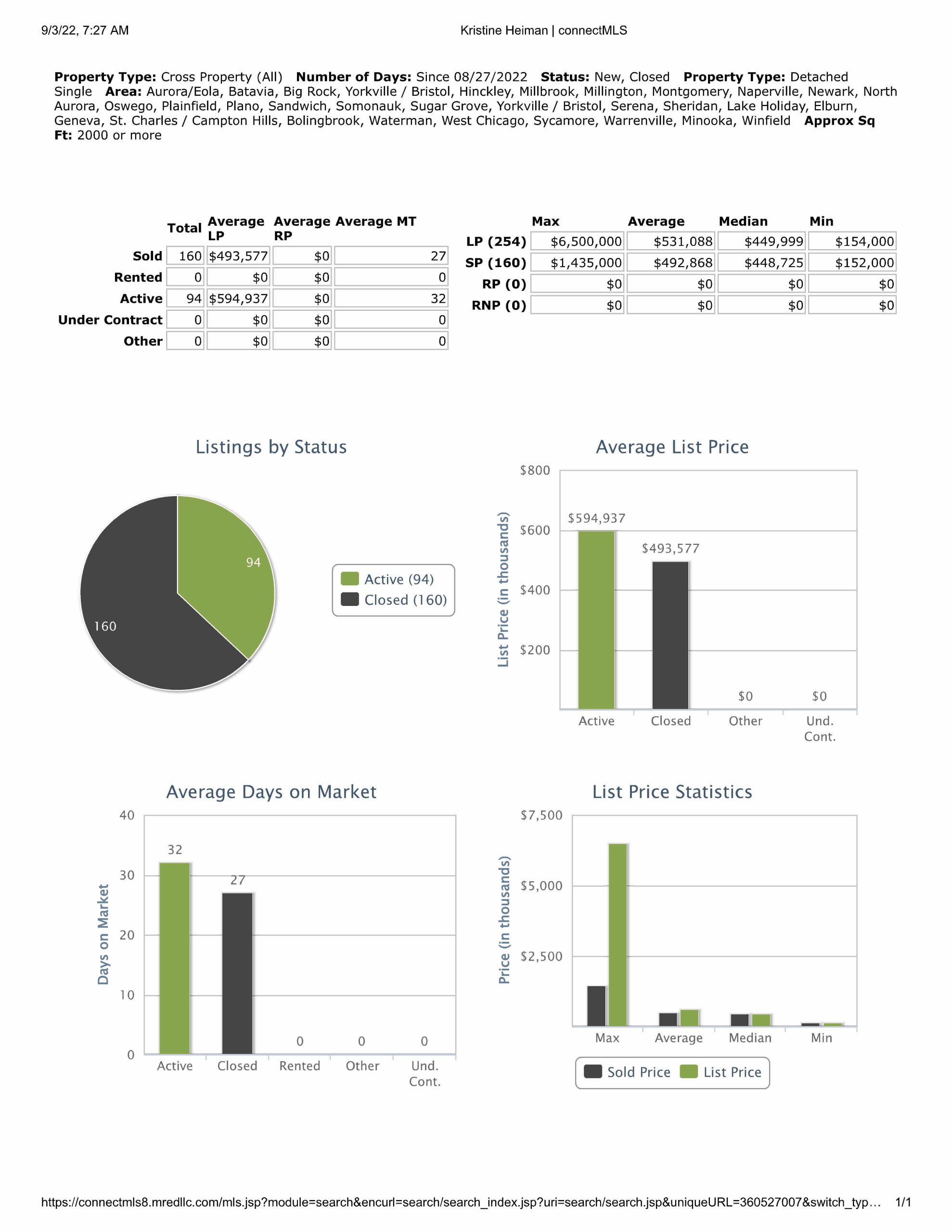 All data provided is from our MLS, MRED, LLC. The data changes continuously throughout the day as agents upload their information.
