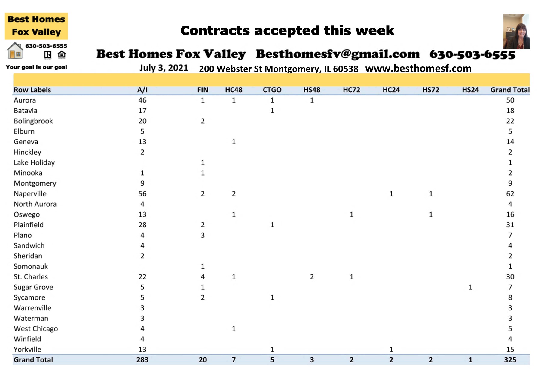 Contracts accepted this week were higher. 345 this week compared to 314 the week before. Buyers are not slowing down. We are still seeing multiple offers. If you are thinking about selling now is the time to call us, and get it on the market.