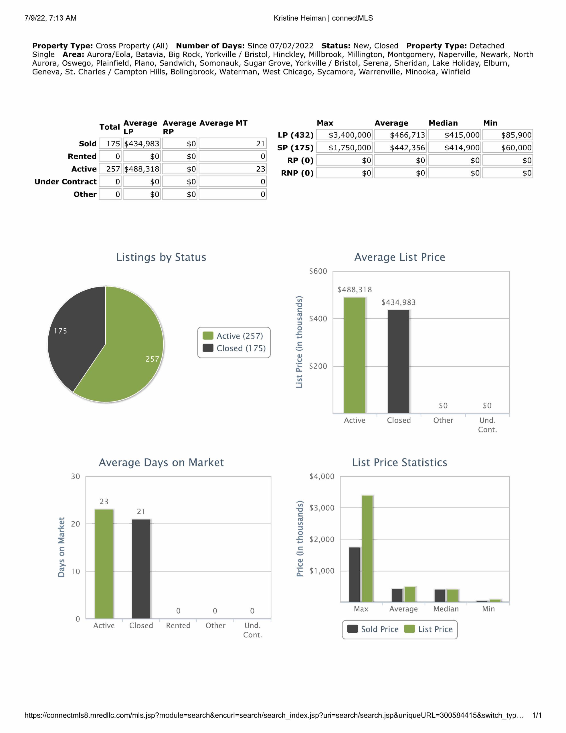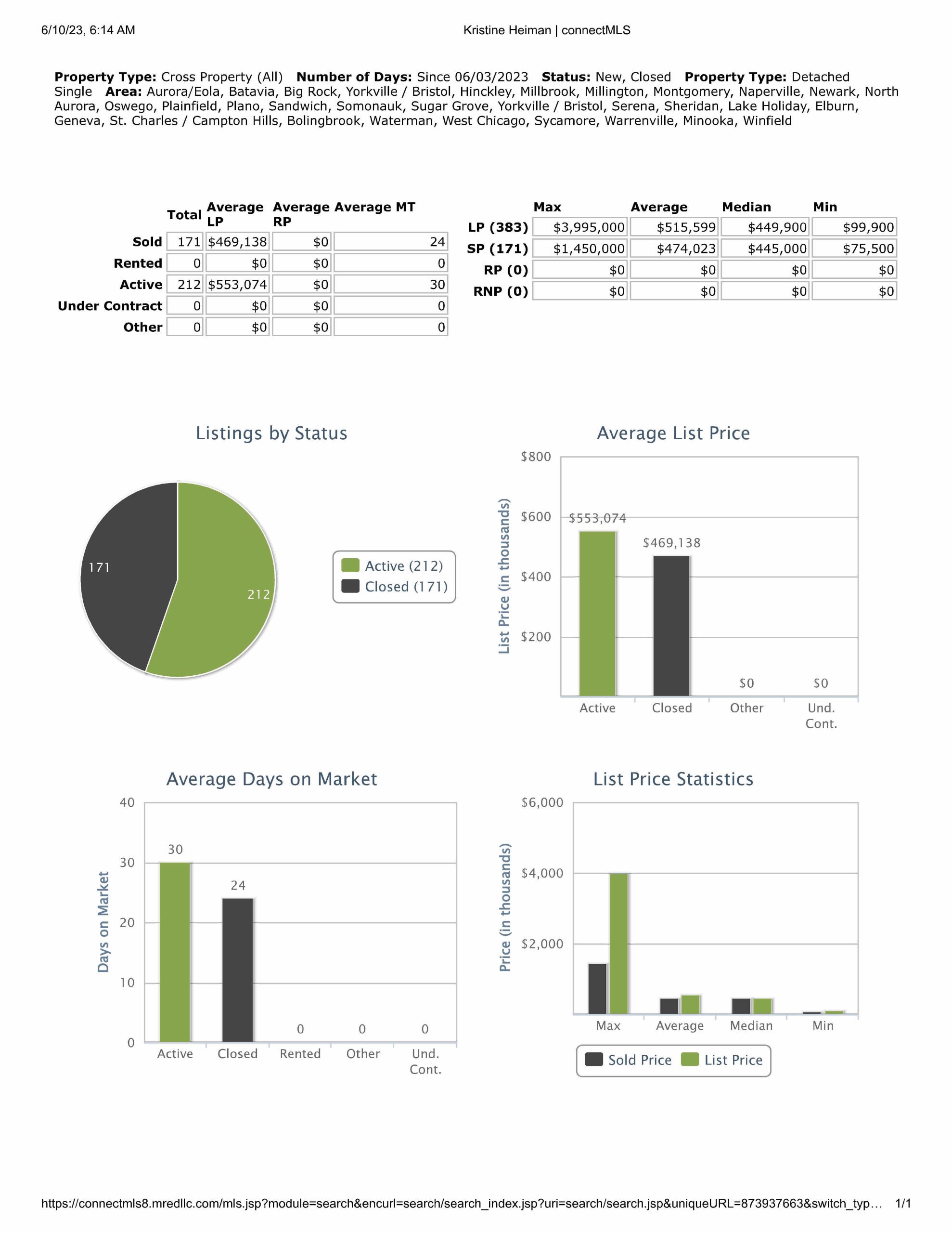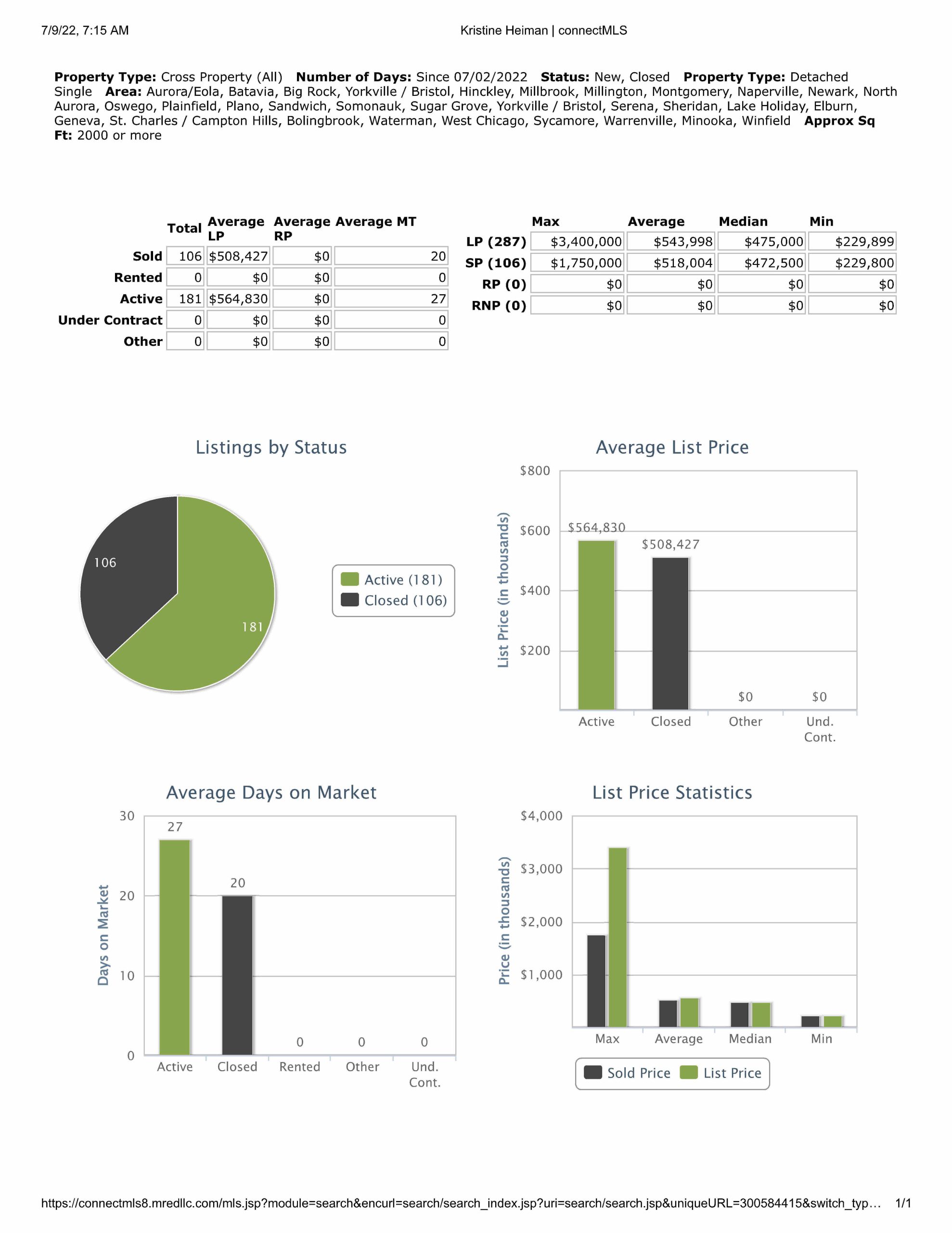 All data provided today is downloaded from our MLS, MRED, LLC. It changes throughout the day.