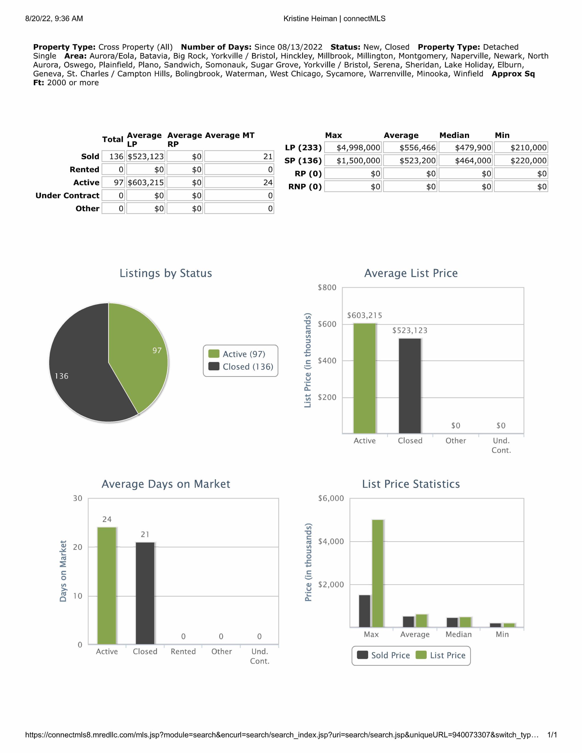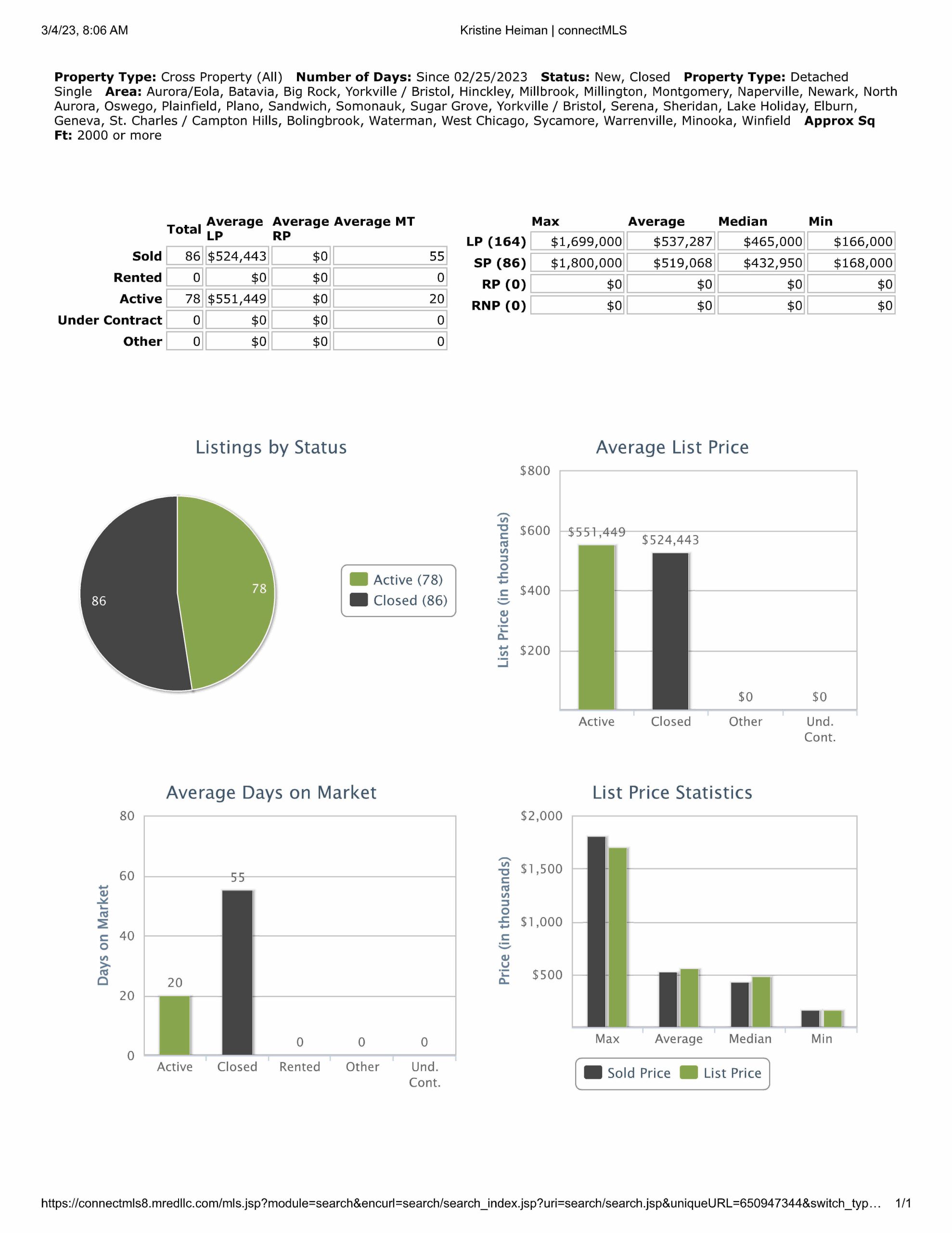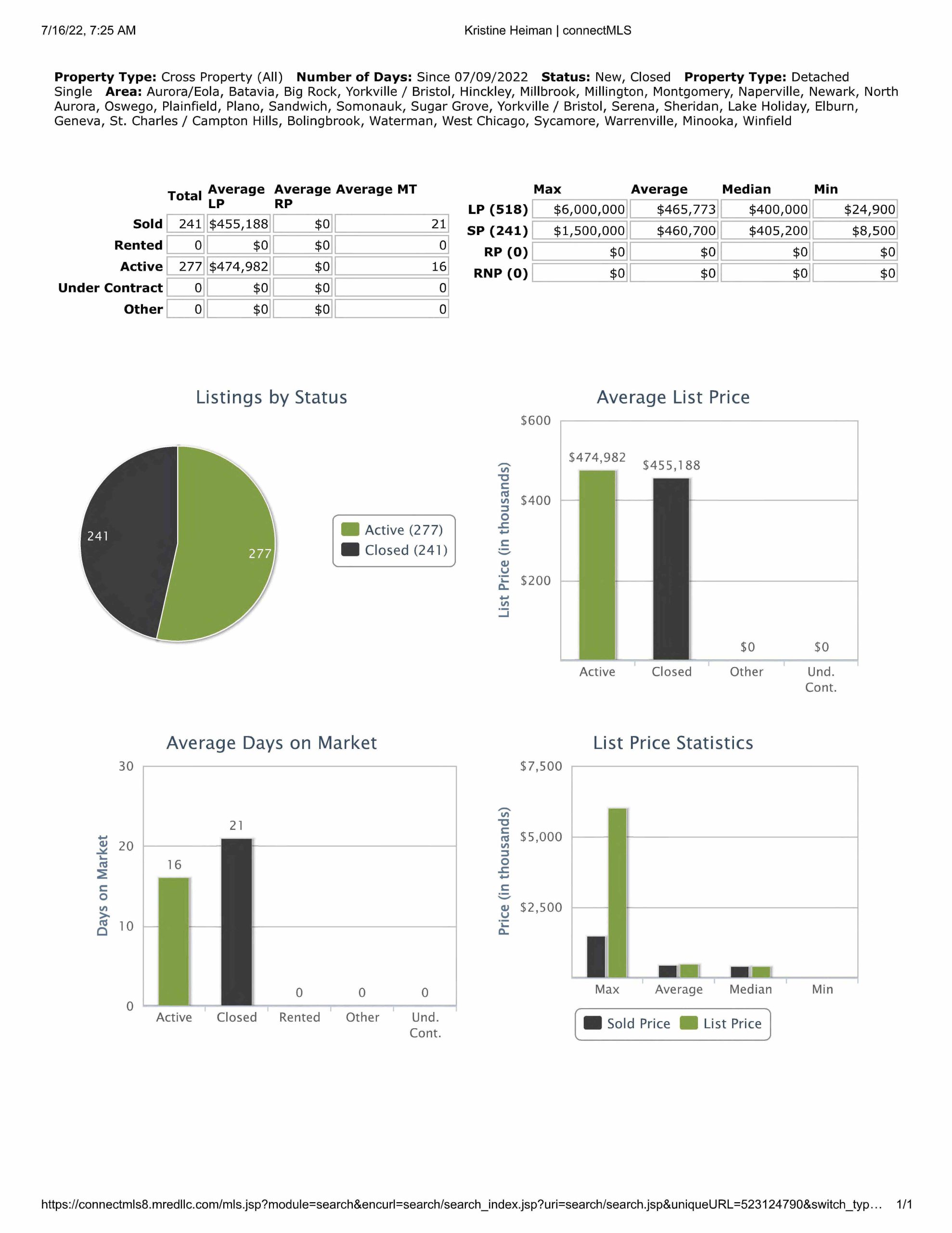 All data provided today is downloaded from our MLS, MRED, LLC. It changes throughout the day.
