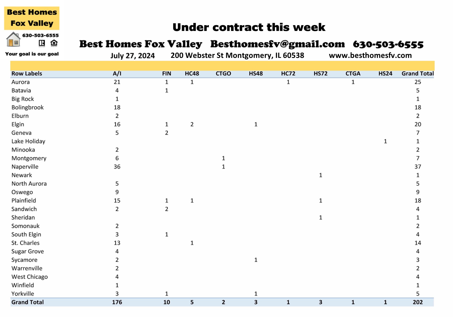 Homes that went under contract this week are consistent. 168 this week compared to 163 the previous week.