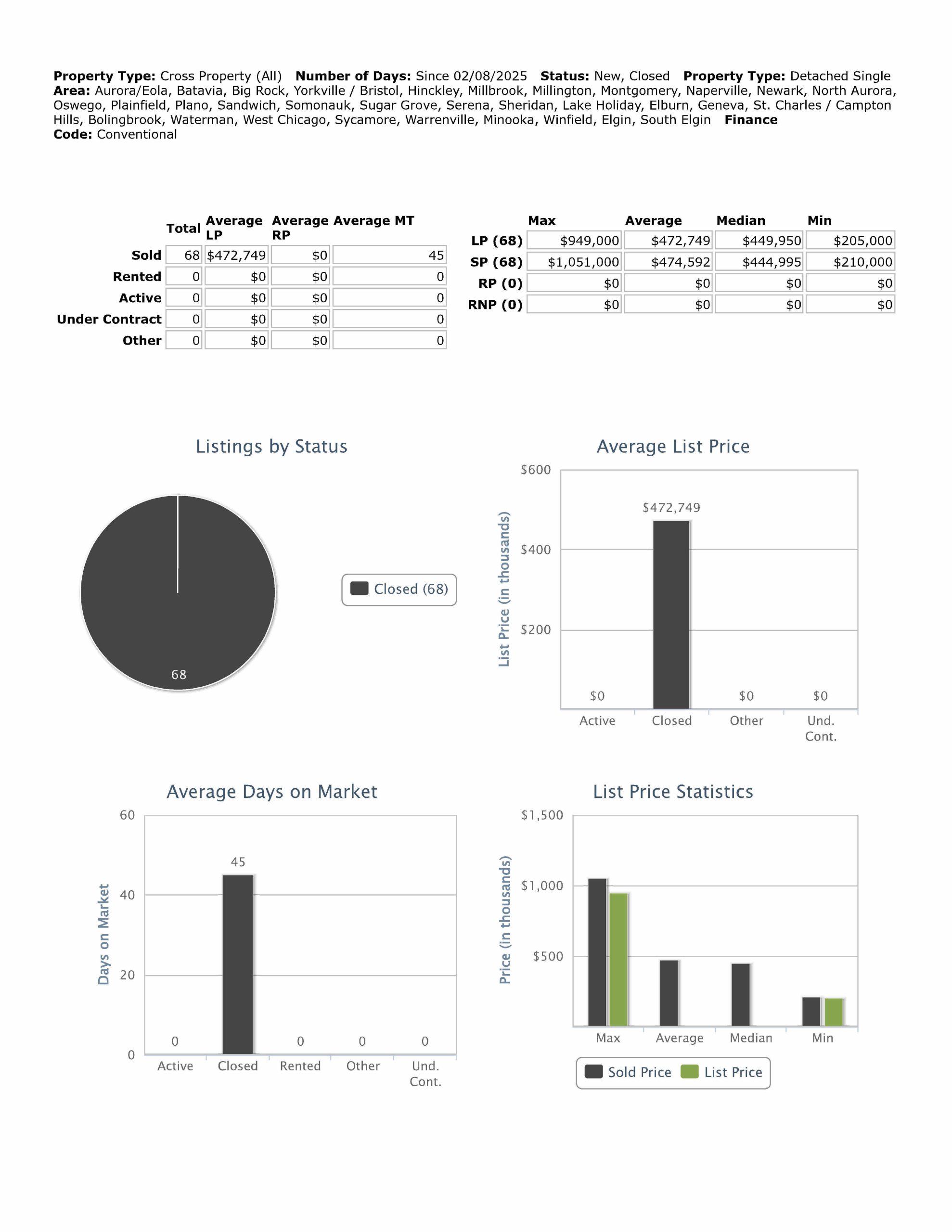 All data provided today was downloaded from our MLS, MRED, LLC. It changes throughout the day as homes come on the market or change status