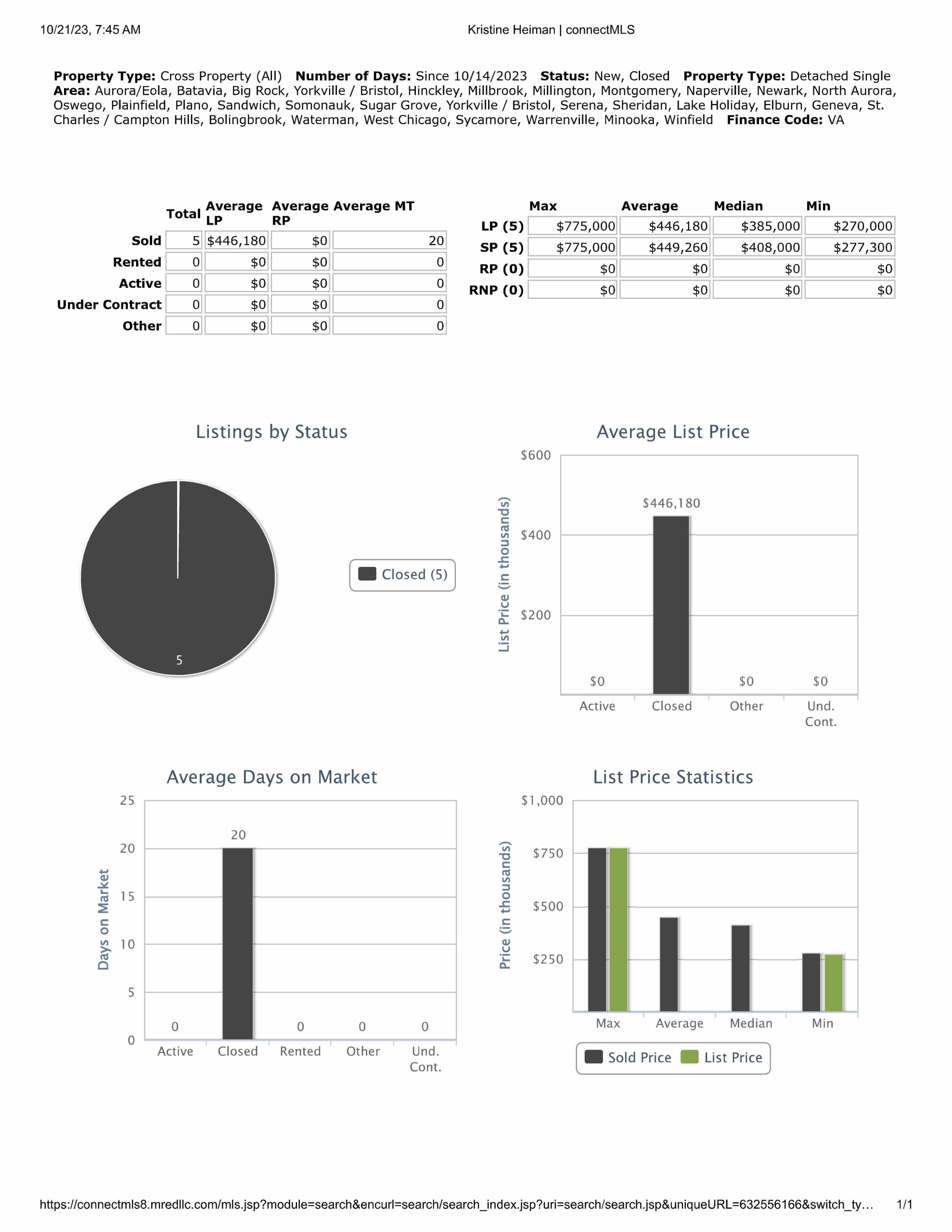 All data provided today is from our MLS, MRED, LLC. It changes throughout the day.