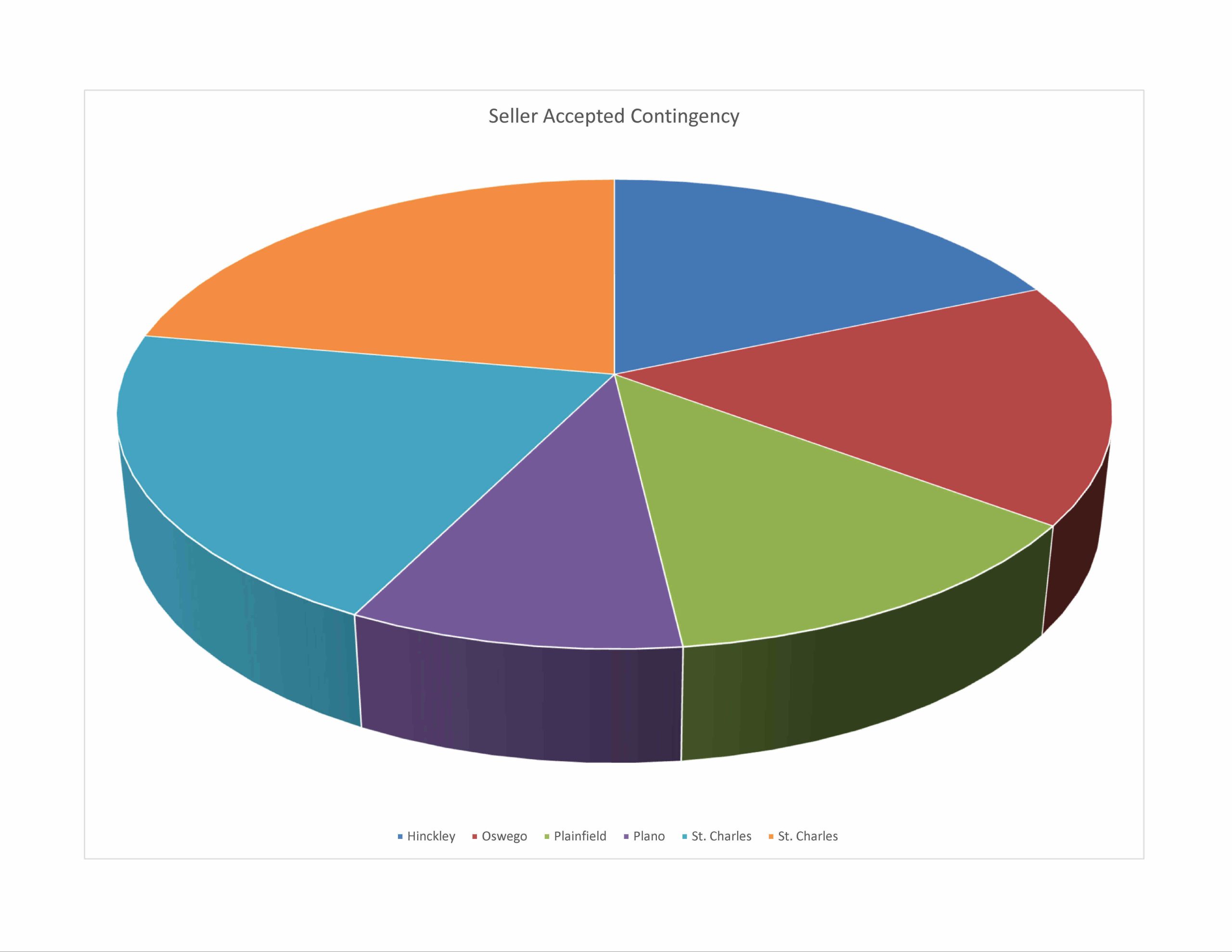 Seller’s accepted contracts that are contingent on the buyer closing on their current home. 2 with a kick-out clause of 72 hours, 4 with 48 hours, and 2 with 24 hours.
