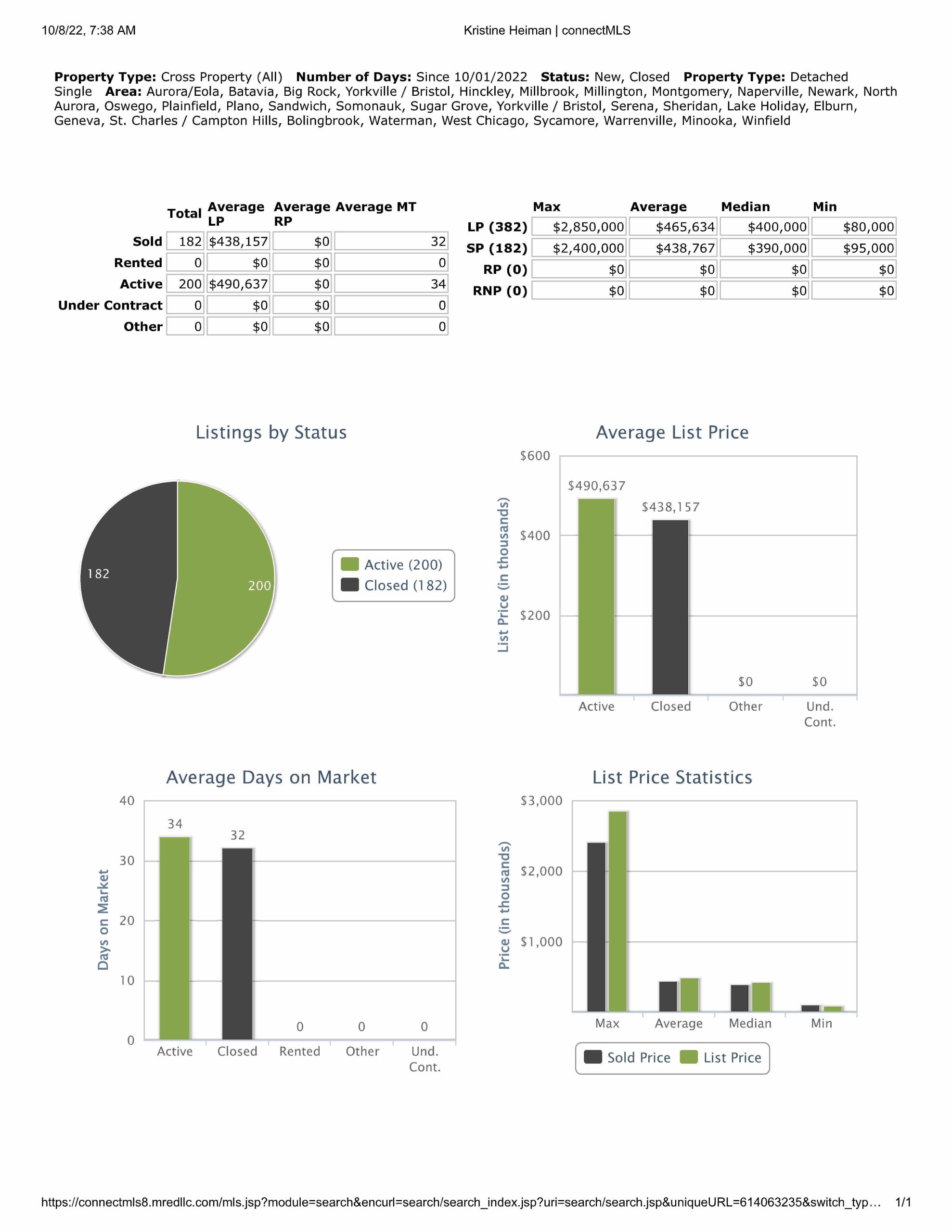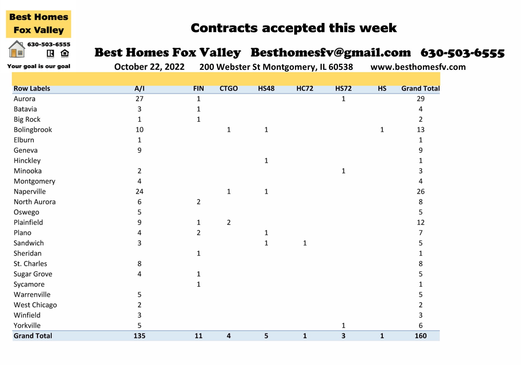 We will show you how many new listings, closed, under contract, median prices, financing used, and 2022 by the month and also show you activity in 2021 and 2020 so you can see how this year compared.