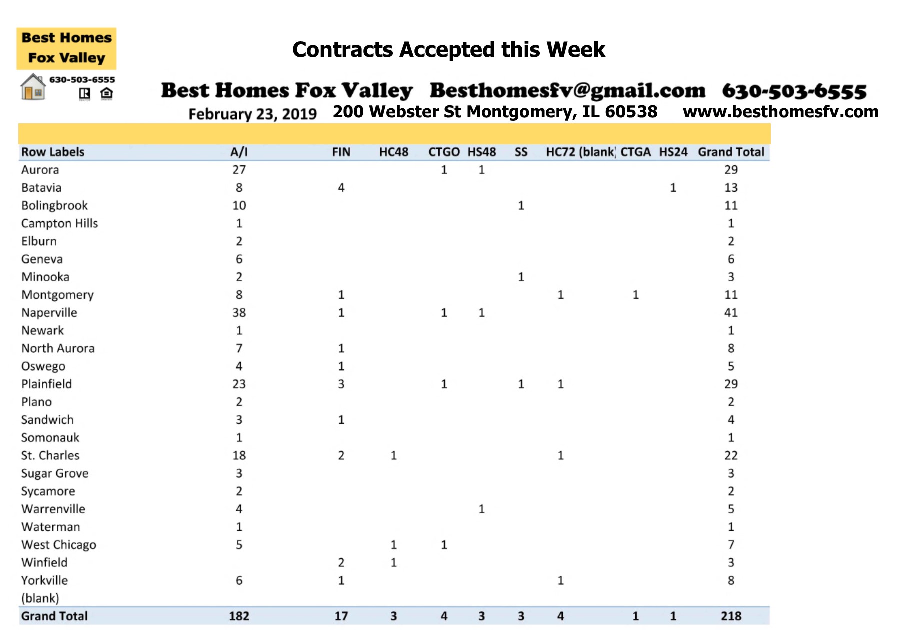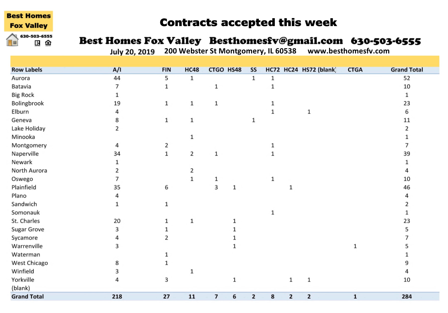 Contracts accepted this week were very consistent. 177 this week compared to 178 the week before. We love consistency! You can’t get more consistent than that. Next week the numbers will be off because of the holiday.
