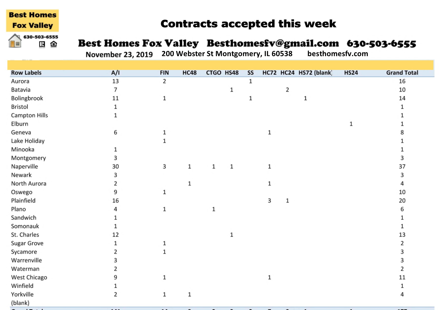 11 23 19 Market update Fox Valley. New listing this week were down. 166 this week compared to 193 the week before. Not good for buyers that are still out looking. Things are still active so I hope that most people that are thinking about selling are just waiting to get to the other side of the Thanksgiving holiday.