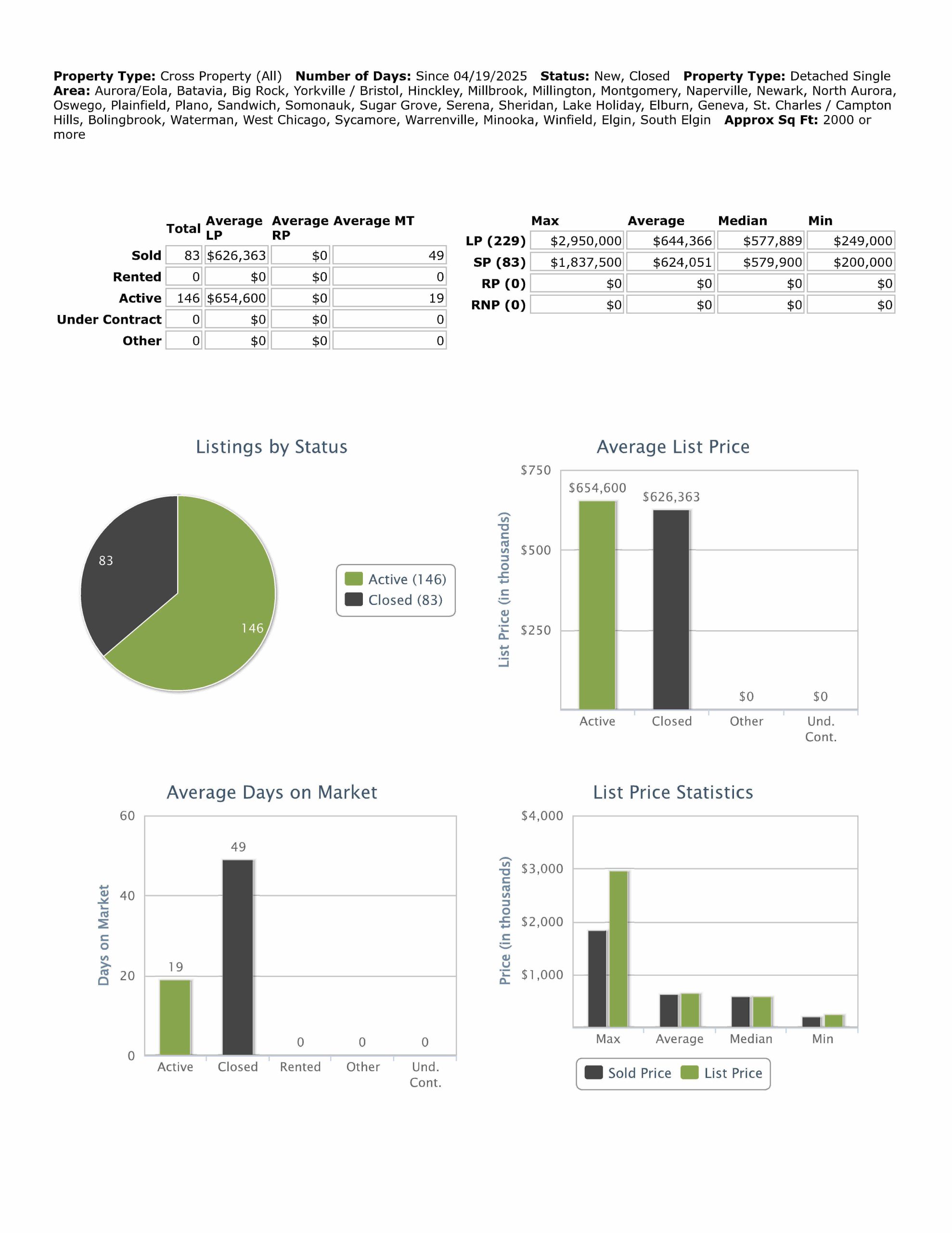All data provided today was downloaded from our MLS, MRED, LLC. It changes throughout the day as agents upload their information.