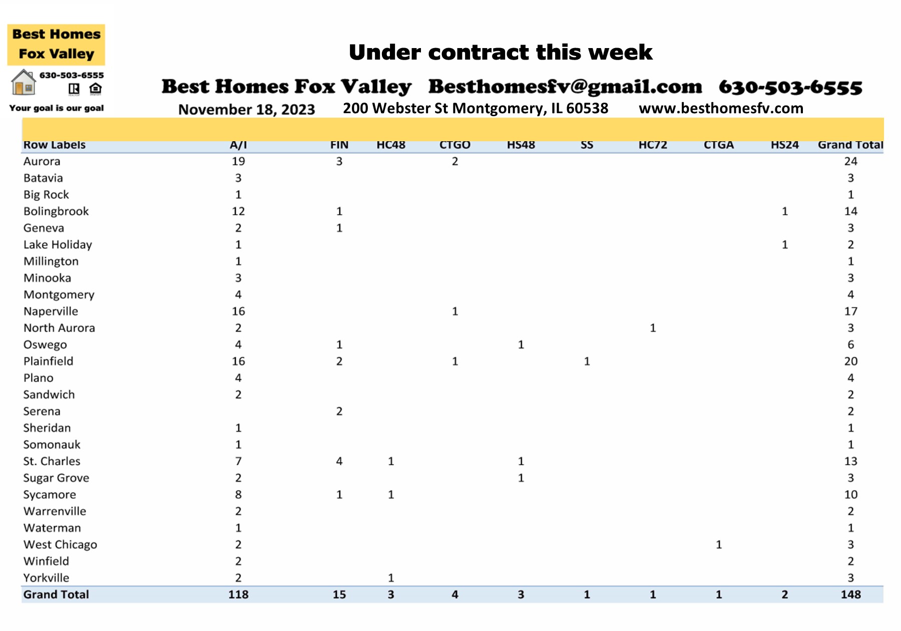 Homes under contract this week are up. 148 this week compared to 119 the previous week.