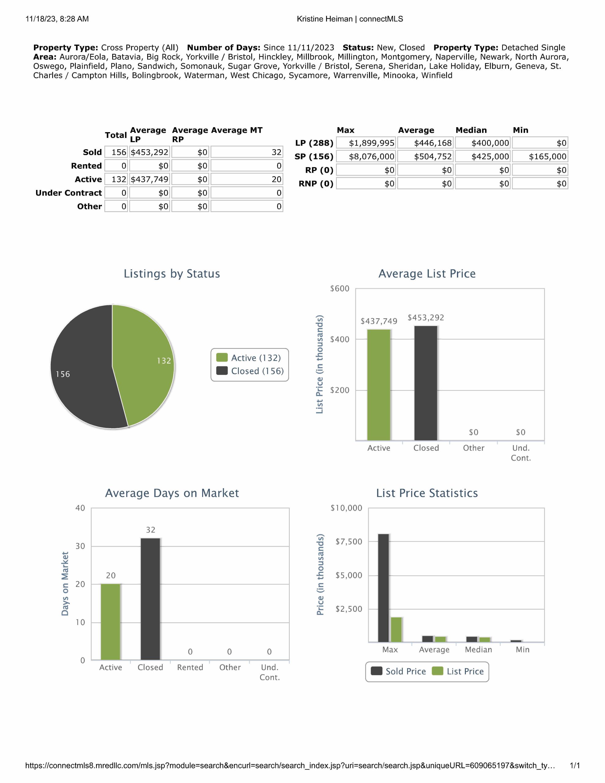 Data provided today is from our MLS, MRED, LLC. It changes throughout the day.