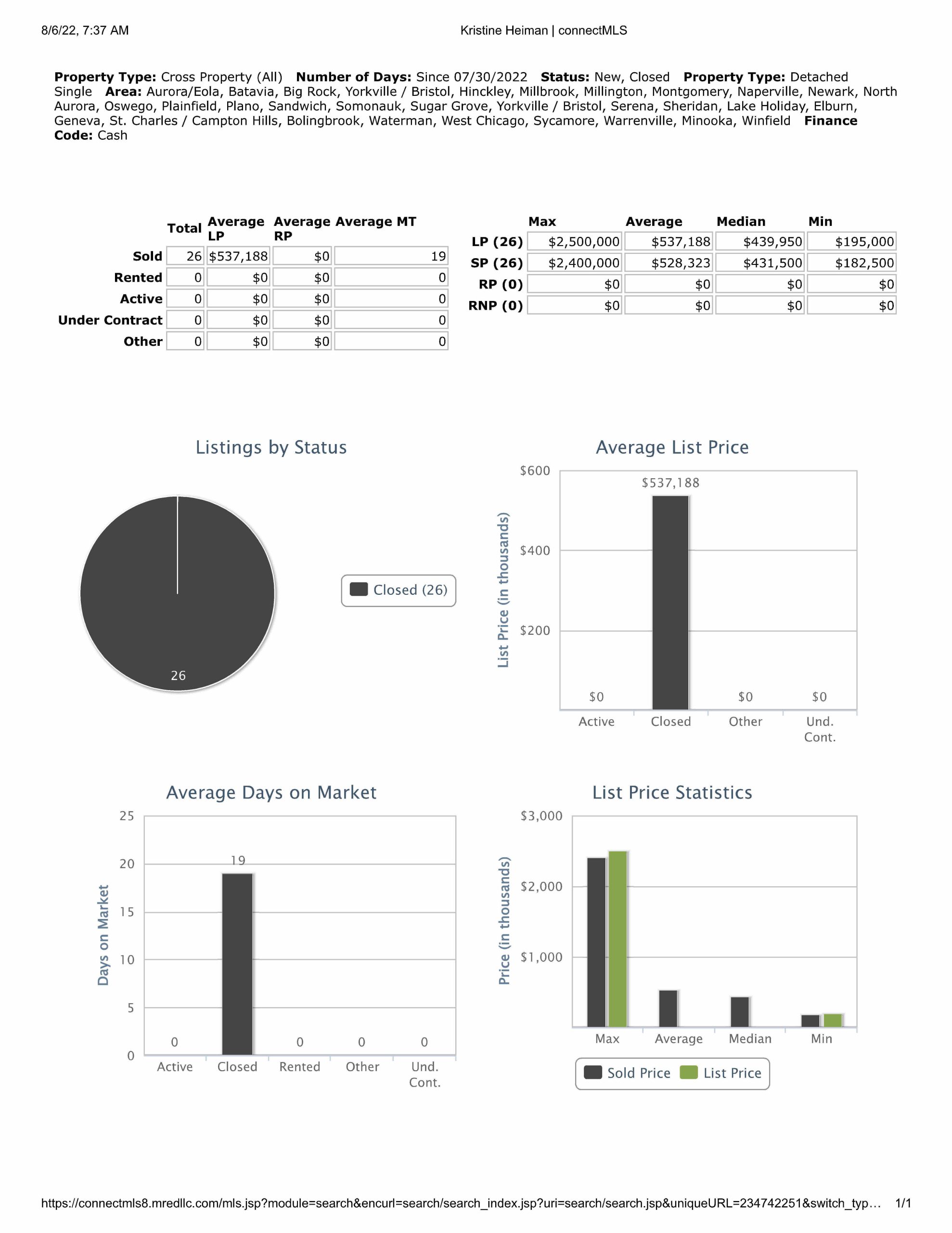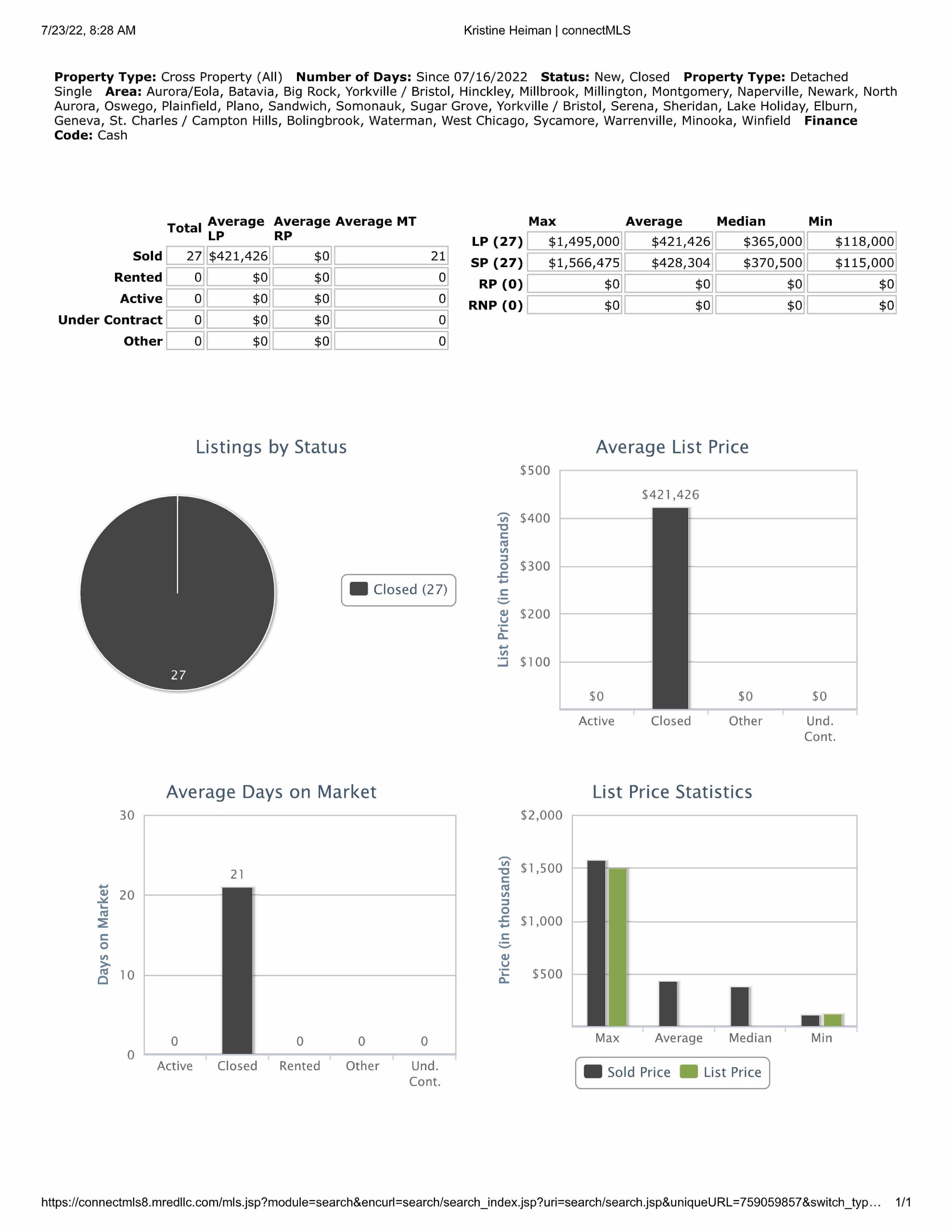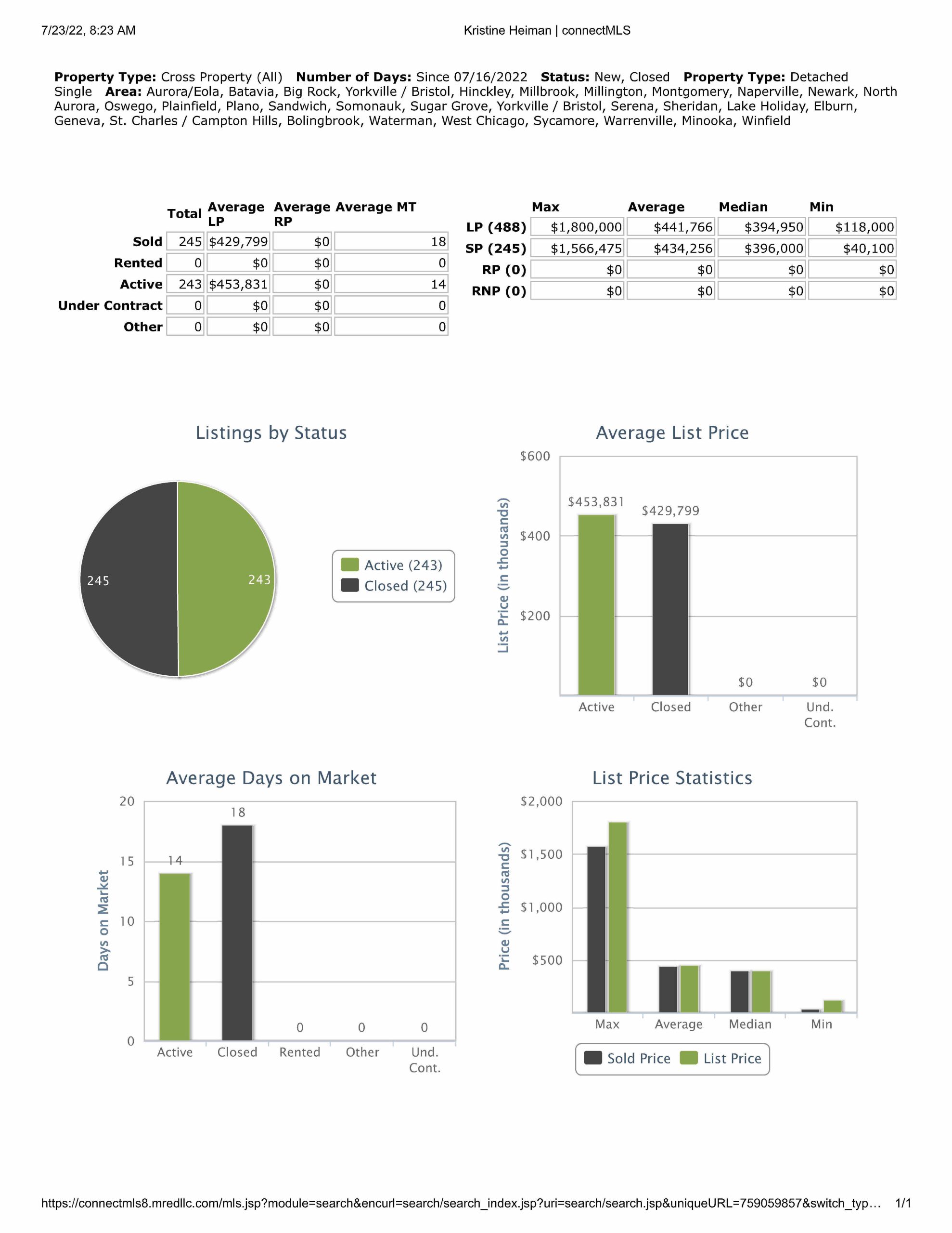 All data provided today is from our MLS, MRED, LLC. It changes constantly throughout the day.