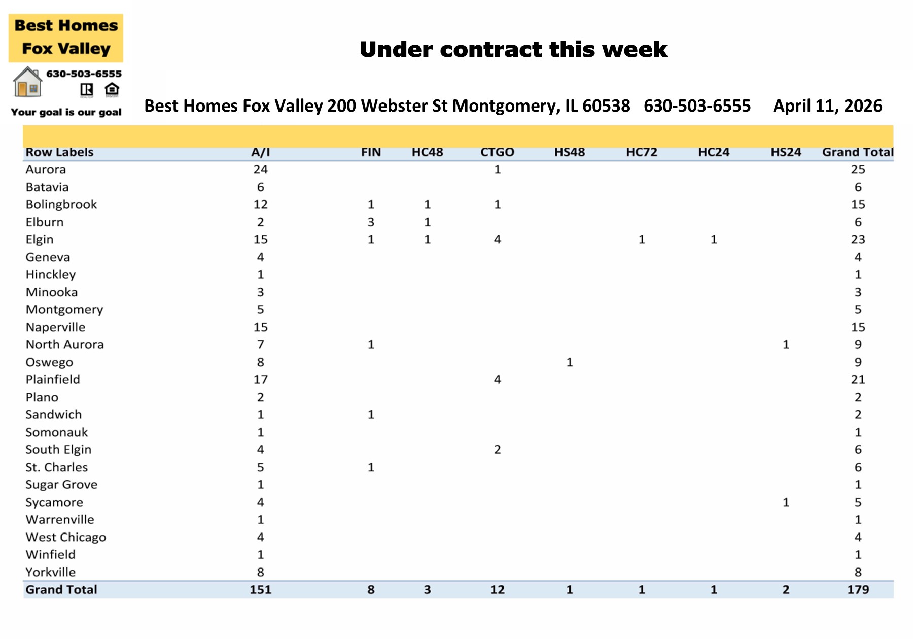 179 homes went under contract this week in the Fox Valley area.