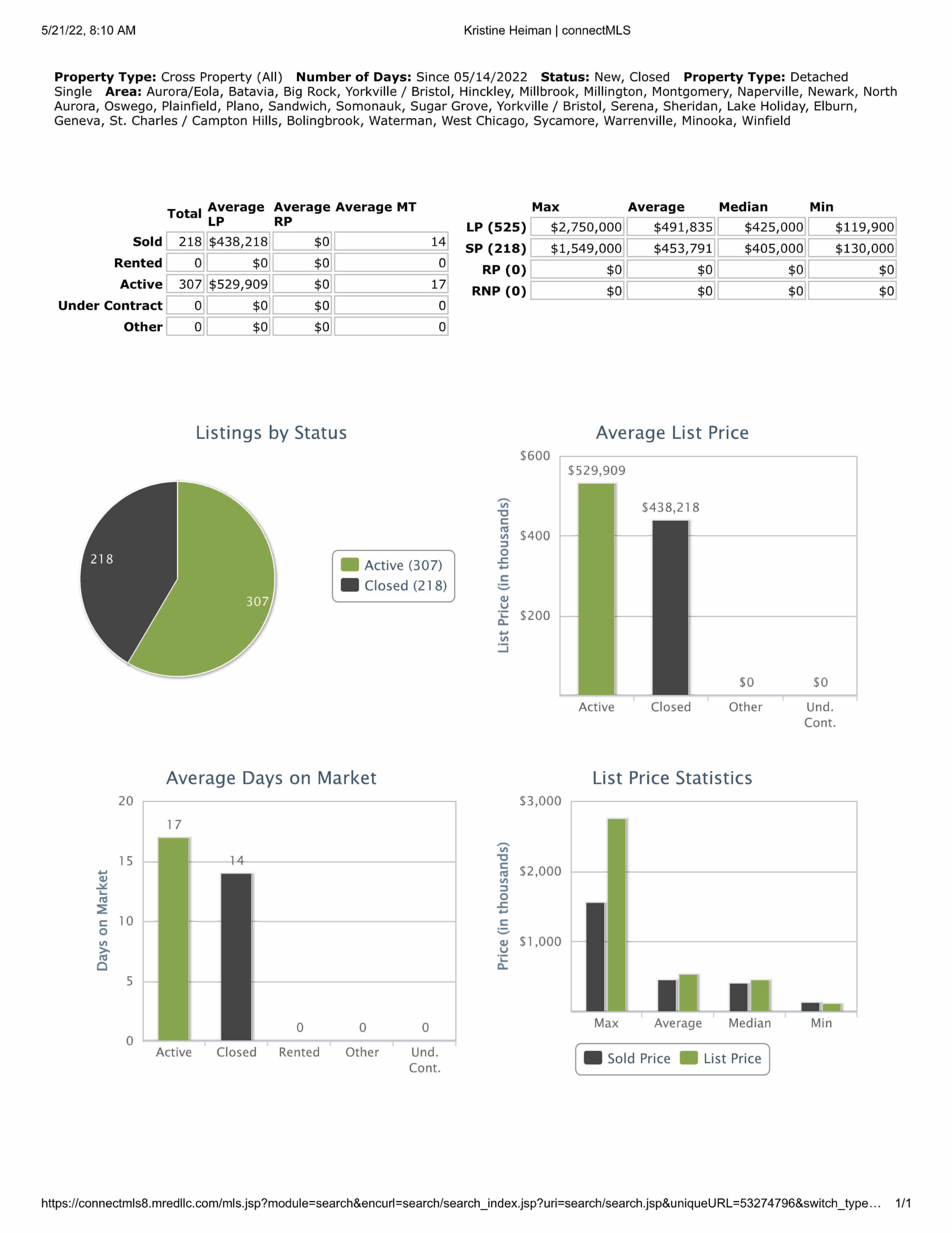 All data is provided from our MLS, MRED, LLC. It changes continuously throughout the day.