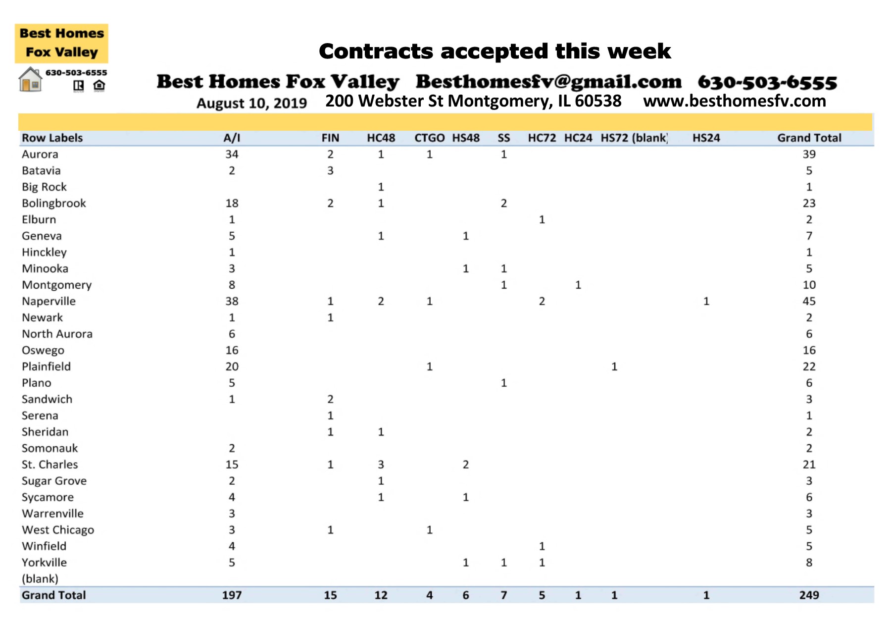 Only 2 short sales accepted this week 1 each in Aurora and Bolingbrook. Now they will be submitted to the lender to see if they will also accept contract price and terms.